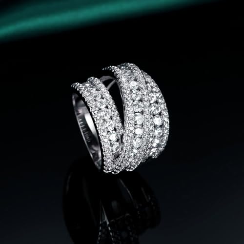 MDFUN Halo Eternity Rings Wedding Bands, 3 Rows Round Cut Cubic Zirconia Statement Rings, 18K White Gold/Yellow Gold Plated Wedding Band for Women Size 5-10