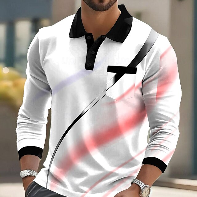 This Men's Geometric Line Polo Long Sleeve Polo Shirts Lapel Business Casual Athleisure Daily Wear Pocket 3D Print Buttons Spring Fall Black Red Blue combines elegant design with practical functionality. Every detail has been carefully considered to ensure you get the premier possible experience. The finest construction means this product will serve you well for years to come.
