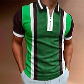 More information about Men's Striped Zip Polo Shirts Golf Shirt Short Sleeve Polo Shirts Collared Shirts Business Casual WorkWear Formal Wear Festival Wear 3D Print Quarter Zip Polo Black Pink Purple