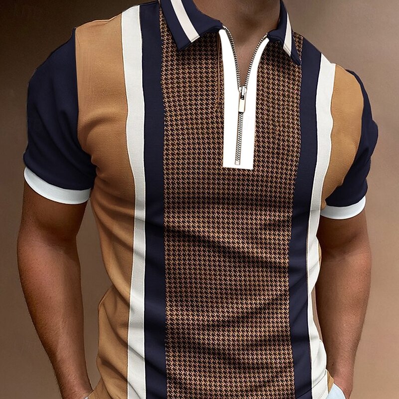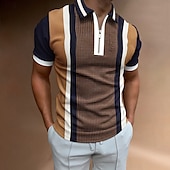 sought-after ! Men's Striped Zip Polo Shirts Golf Shirt Short Sleeve Polo Shirts Collared Shirts Business Casual WorkWear Formal Wear Festival Wear 3D Print Quarter Zip Polo Black Pink Purple