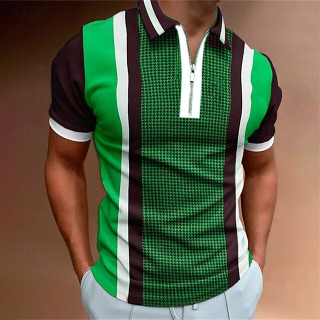 Men's Striped Zip Polo Shirts Golf Shirt Short Sleeve Polo Shirts Collared Shirts Business Casual WorkWear Formal Wear Festival Wear 3D Print Quarter Zip Polo Black Pink Purple 9