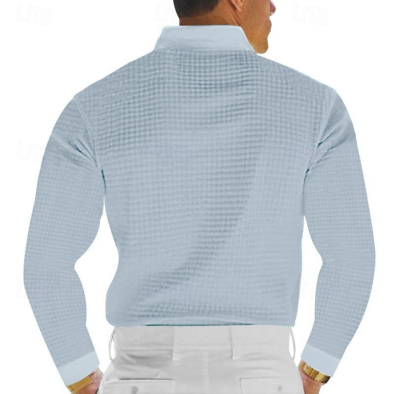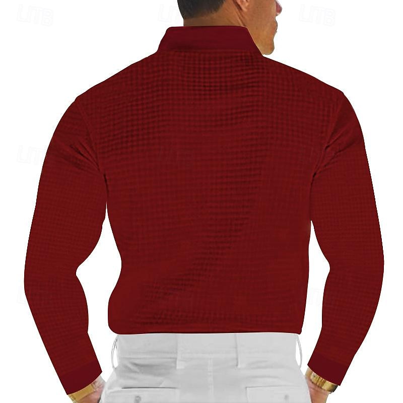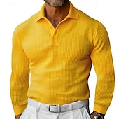 This Men's Waffle Polo Shirt Golf Shirt Work Casual Lapel Long Sleeve Basic new-age Solid Color Button Spring & Fall Regular Fit Black White Yellow Red Light Grey Light Blue Waffle Polo Shirt combines elegant design with practical functionality. Every detail has been carefully considered to ensure you get the best possible experience. The supreme construction means this product will serve you well for years to come.