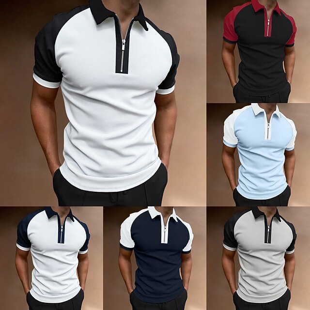 Why Choose Men's Golf Shirt Going out Gym Turndown Quarter Zip Short Sleeve Sportswear Casual Solid Color Sports Patchwork Zipper Spring & Summer Slim Black / Red Black / Gray Navy Blue Sky Blue Light Grey Dark?