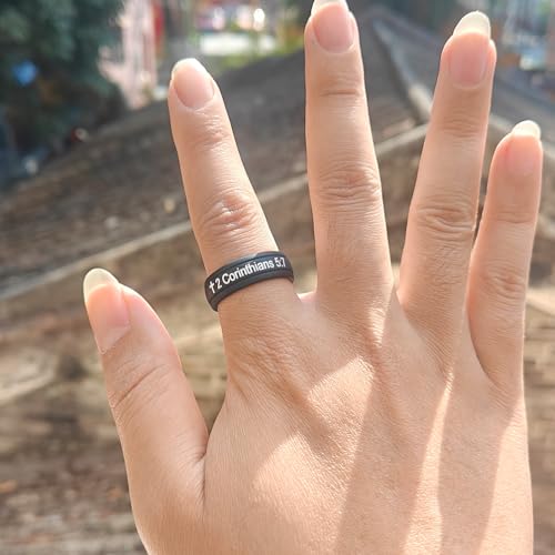 Custom Logo Text Silicone Rings 8mm Double Slot Outdoor Sports Silicone Ring Stackable Ring Comfort Fit Promise Engagement Rings Wedding Bands, Christianity Belief Inspirational Rings