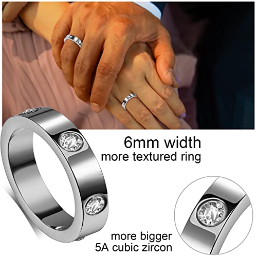 Ring size: 7Item width: 0.1 inchesMaterial: LeatherMetal type: Stainless SteelGem type: Cubic ZirconiaMaterial:The promise love Ring is made of titanium steel with 6 pcs Cubic Zirconia.Not fade or lose luster,convenient to wear, comfortable & lovely.Ring Size: Widen to 6mm Width,Available 6-11US SizeSimple & Elegant Ring:The wedding love CZ embed ring has 3 colors.Set with 6 larger cubic zirconias.Sparkling rings are not only suitable for everyday wear, but also great for showing your love and faith.Simple and elegant style is very suitable for couple rings.with Gift Box: This beautiful ring comes with a gift box and ready for giving.Ideal gift for Valentines Day, Mothers Day, Birthday to your Girlfriend or Wife.Customer Service: If you have any questions, please feel free to contact us. Perfect for everyday use. top-grade materials and excellent craftsmanship ensure long-lasting durability.