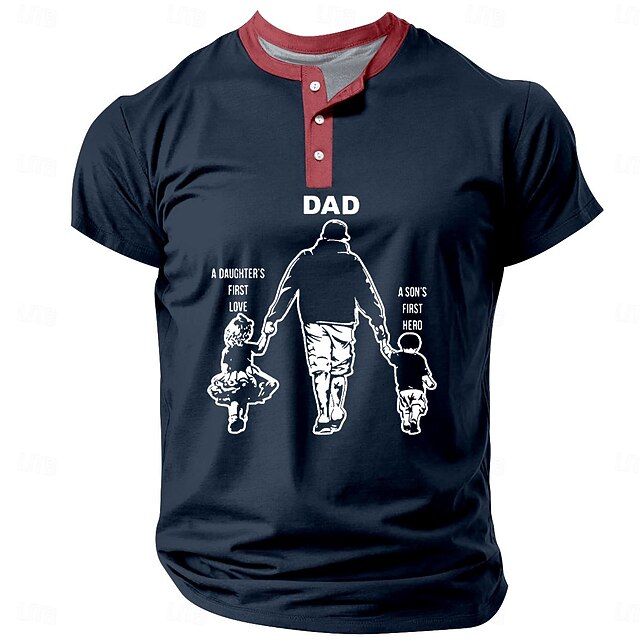 Men's Dad Henley Short Sleeve Graphic T-Shirt: A Daughter's First cherish, A Son's First Hero
