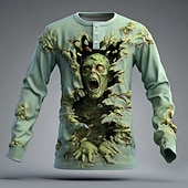 Men's Halloween Zombies Henley Shirt Long Sleeve Fashion Cute Daily Casual Holiday Going out Fall Spring &  Fall Green Purple Blue Khaki Henley Henley T-Shirt 5