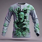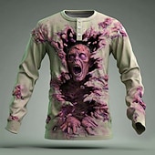 More information about Men's Halloween Zombies Henley Shirt Long Sleeve Fashion Cute Daily Casual Holiday Going out Fall Spring & Fall Green Purple Blue Khaki Henley Henley T-Shirt