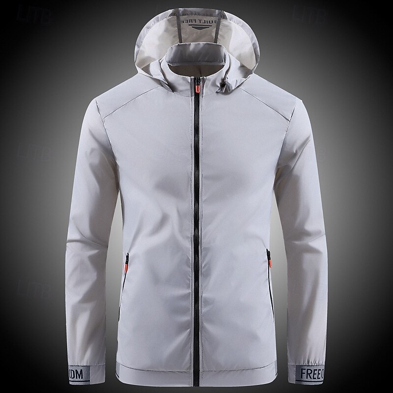 This Men's Lightweight Jacket Outdoor Jacket Summer Jacket Windbreaker Vacation Daily Sunscreen Breathable Pocket Spring & Summer Plain Fashion timeless Hooded Regular White Gray Jacket combines elegant design with practical functionality. Every detail has been carefully considered to ensure you get the best possible experience. The finest construction means this product will serve you well for years to come.