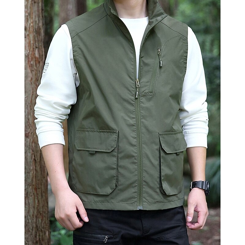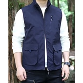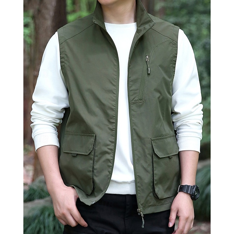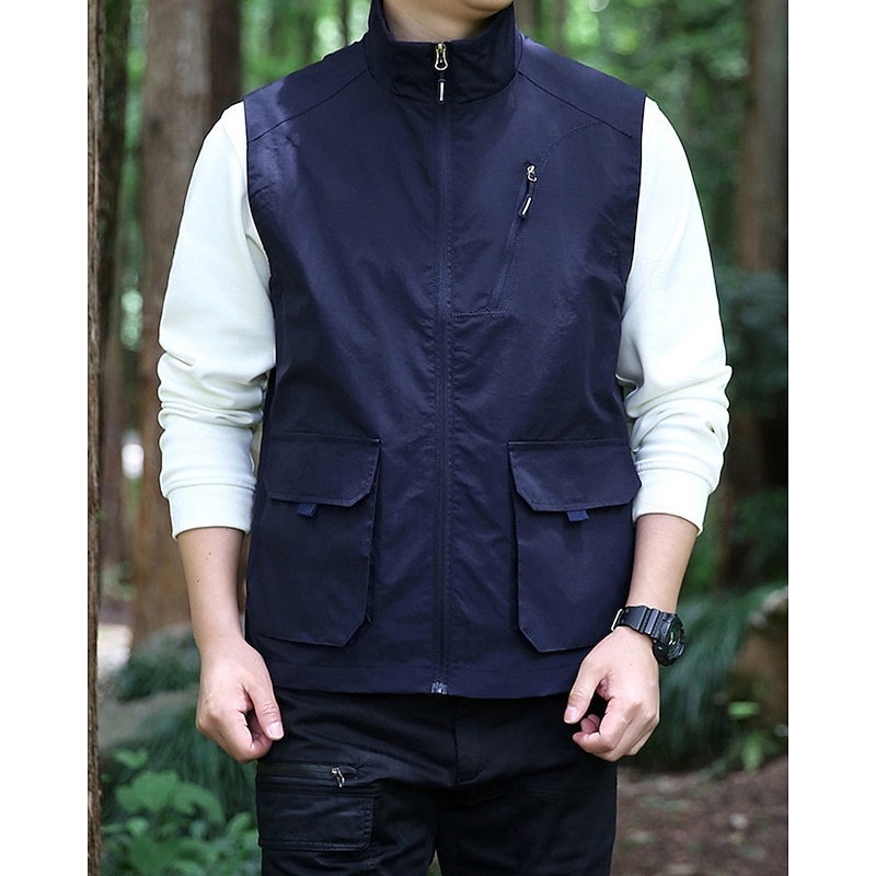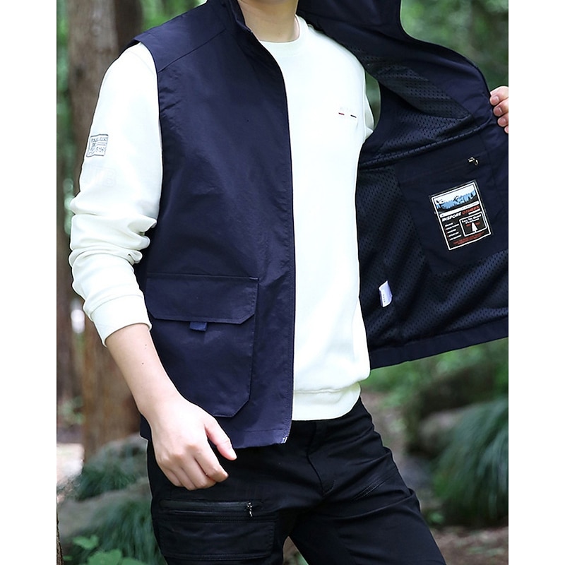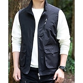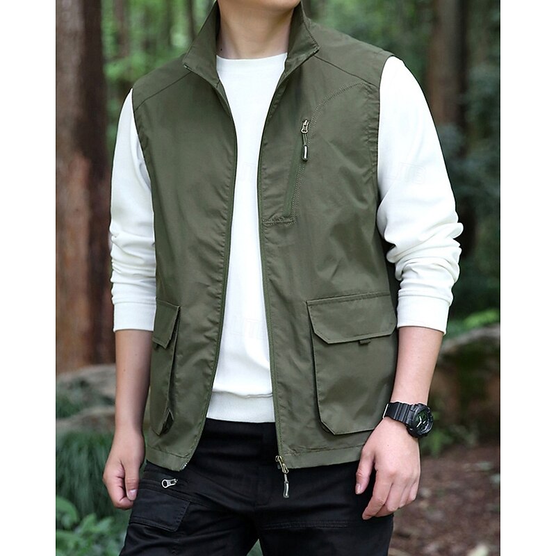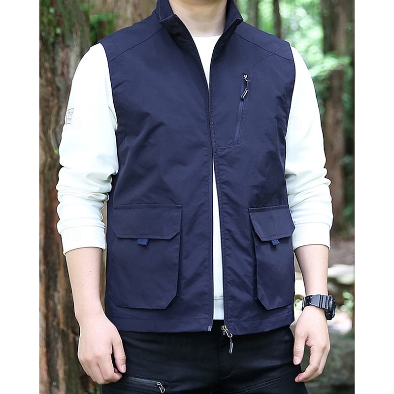 Men's Vest Gilet Outdoor Daily Fashion Casual Spring Fall Pocket Polyester tender Breathable Plain Zipper Stand Collar Regular Fit Black Khaki Army Green Dark Blue Vest