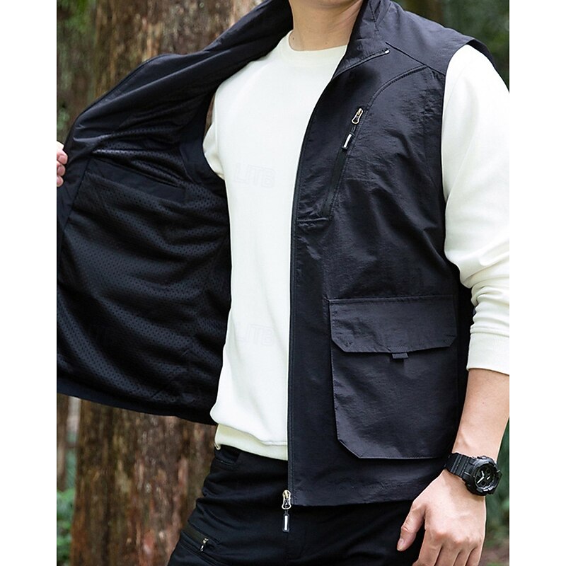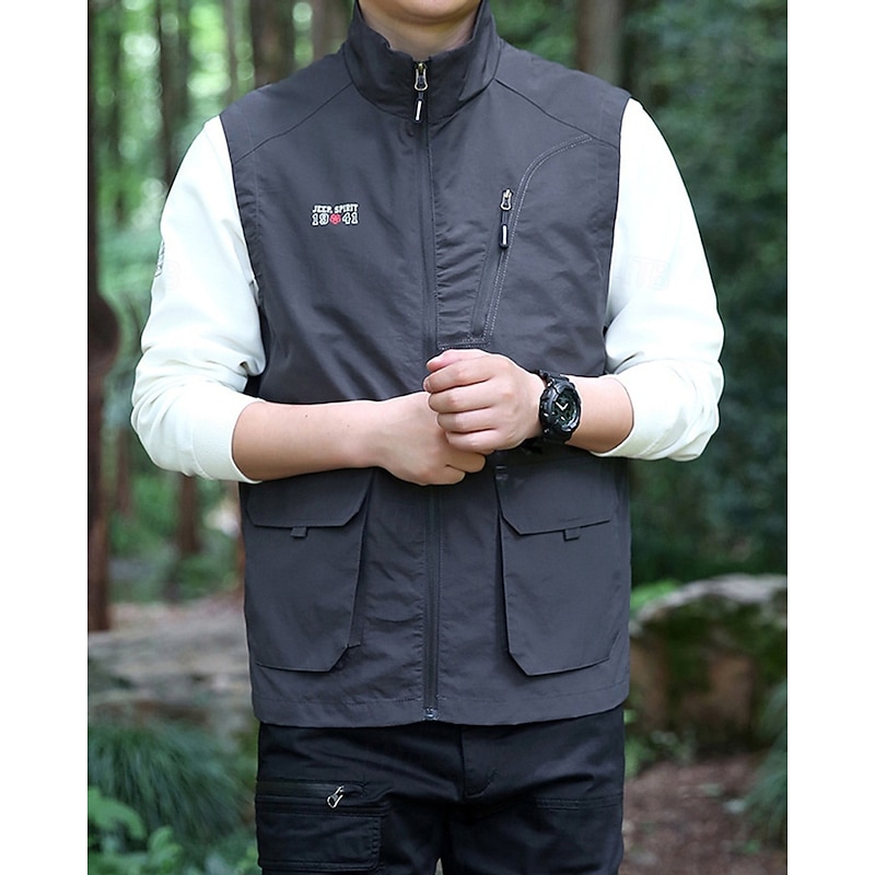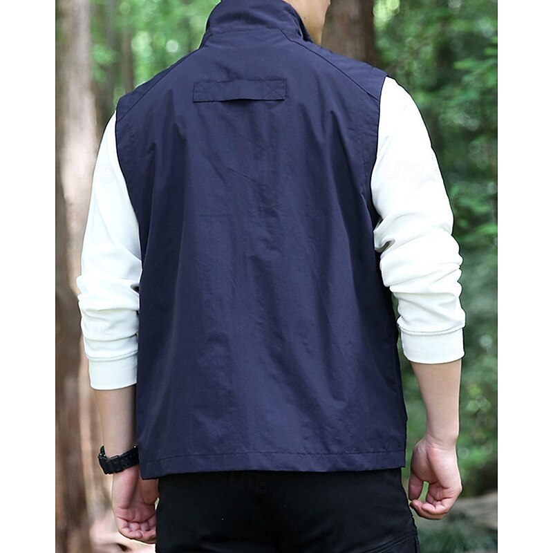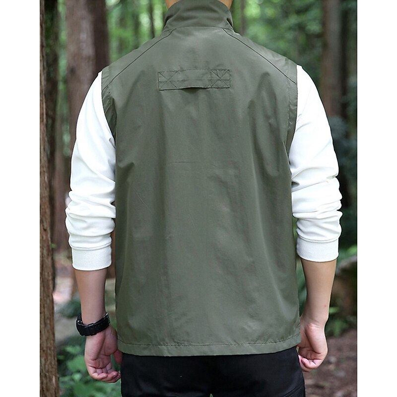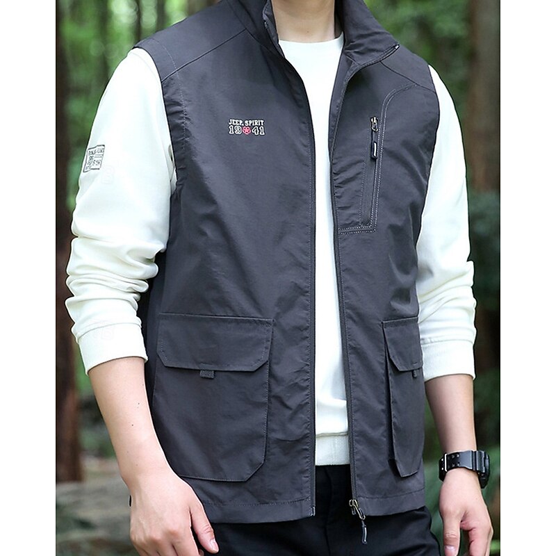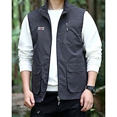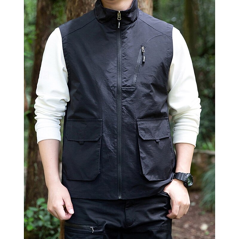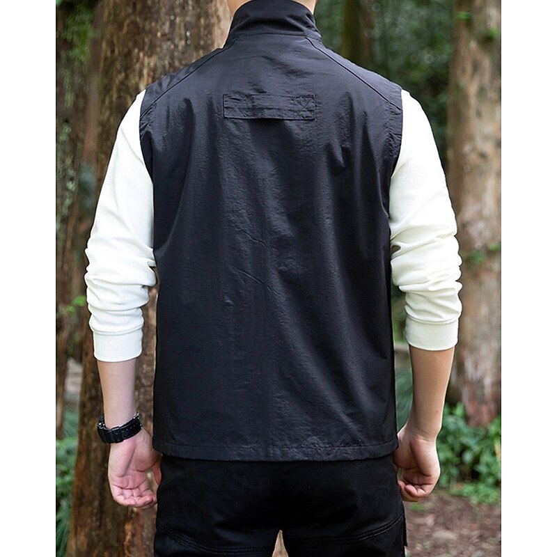 Men's Vest Gilet Outdoor Daily Fashion Casual Spring Fall Pocket Polyester tender Breathable Plain Zipper Stand Collar Regular Fit Black Khaki Army Green Dark Blue Vest