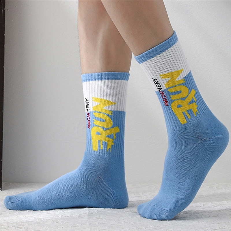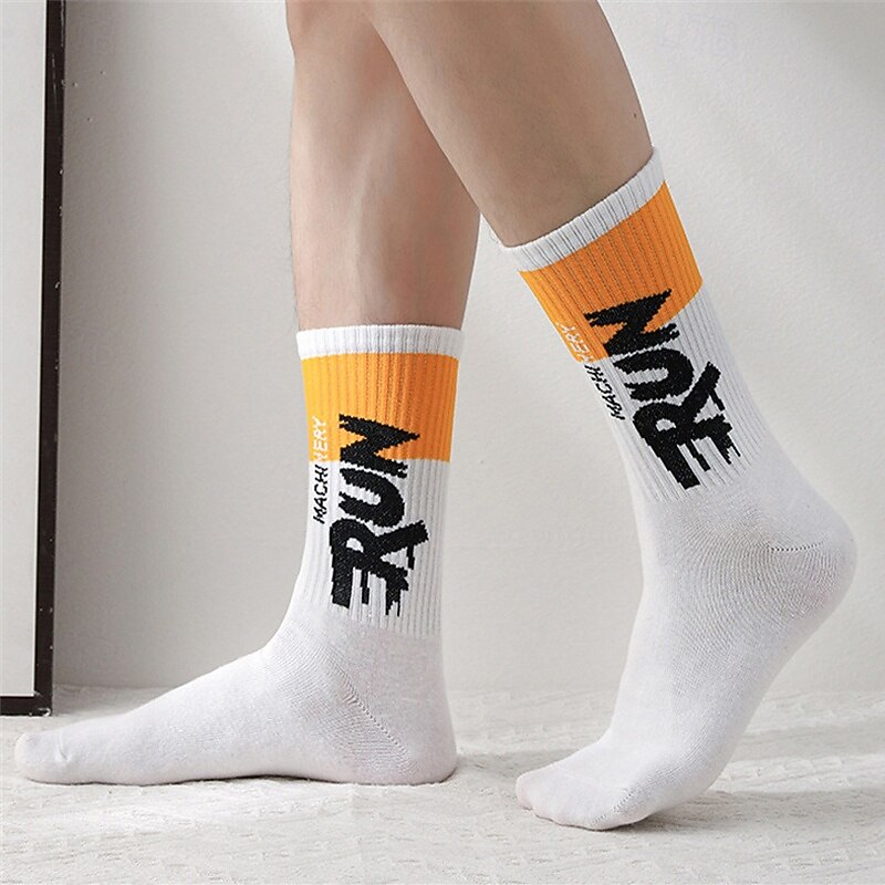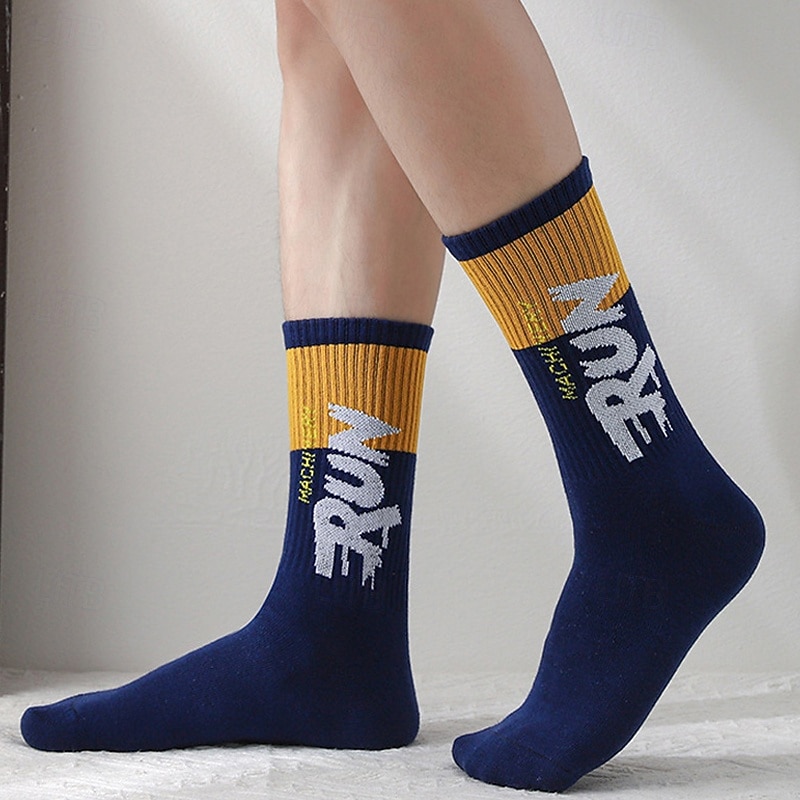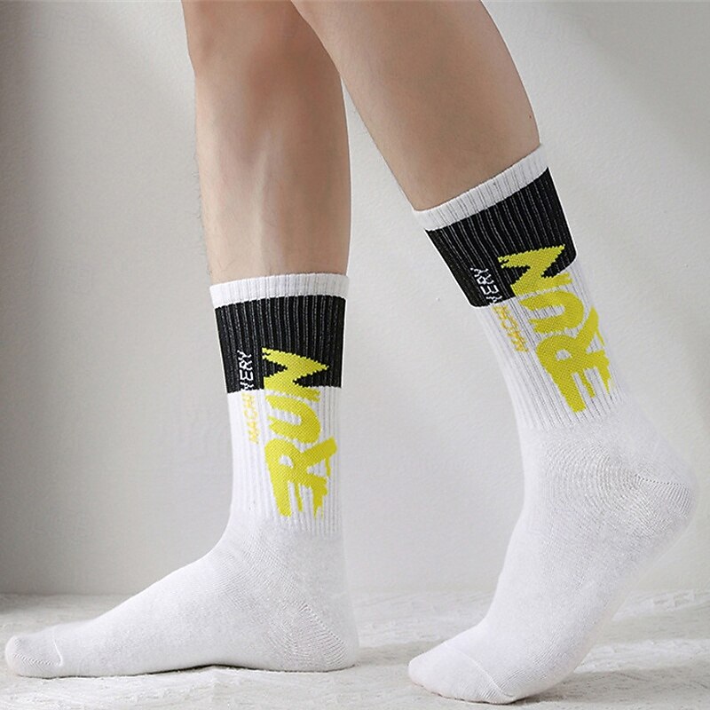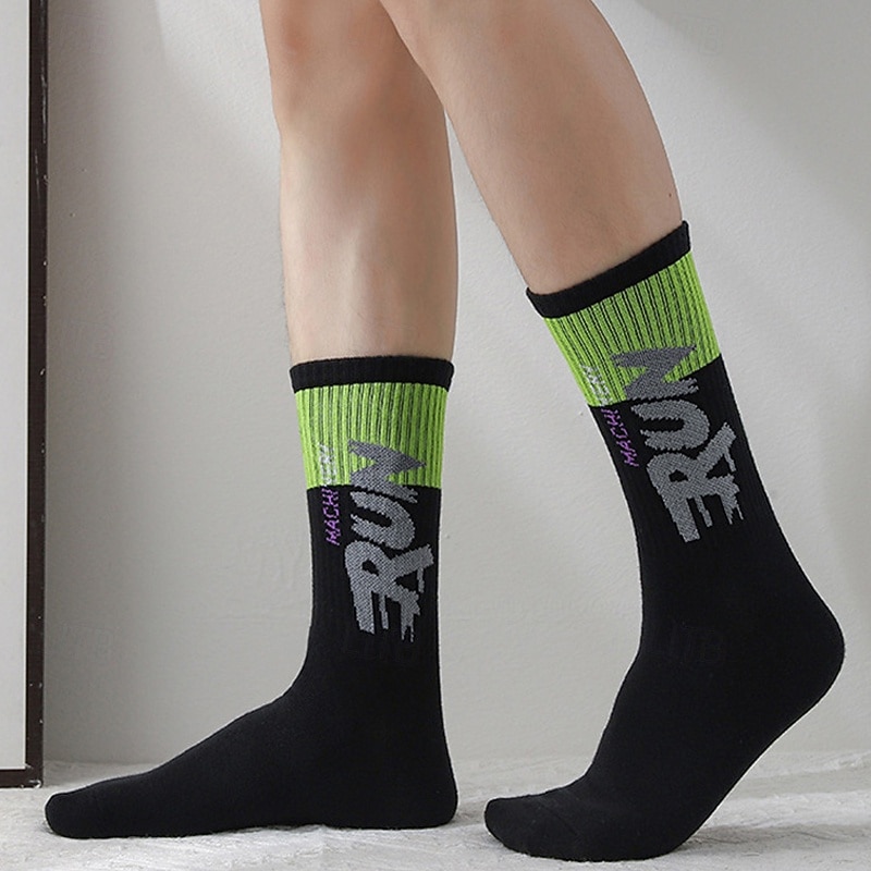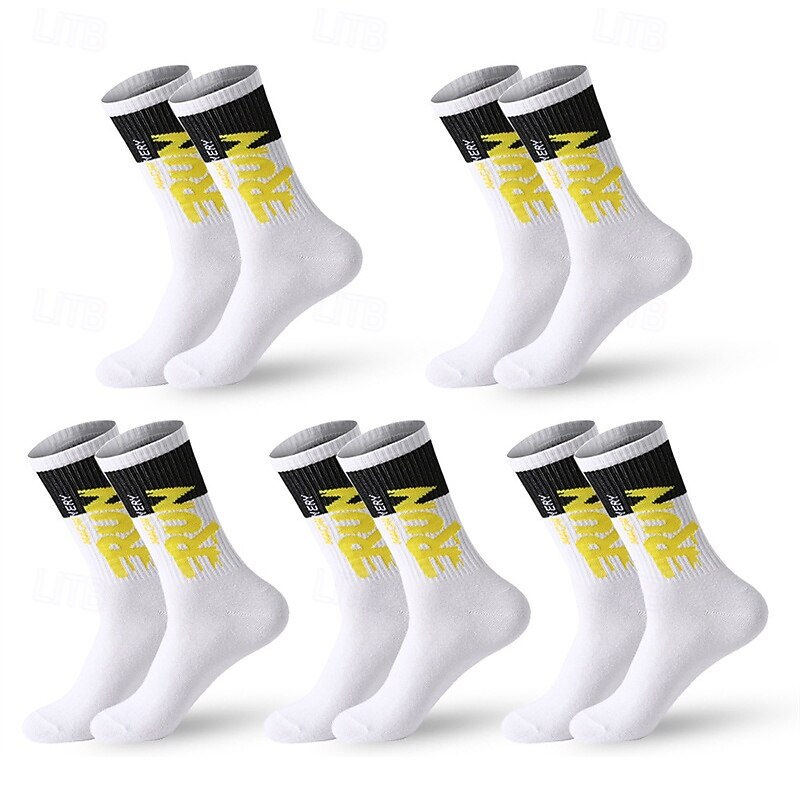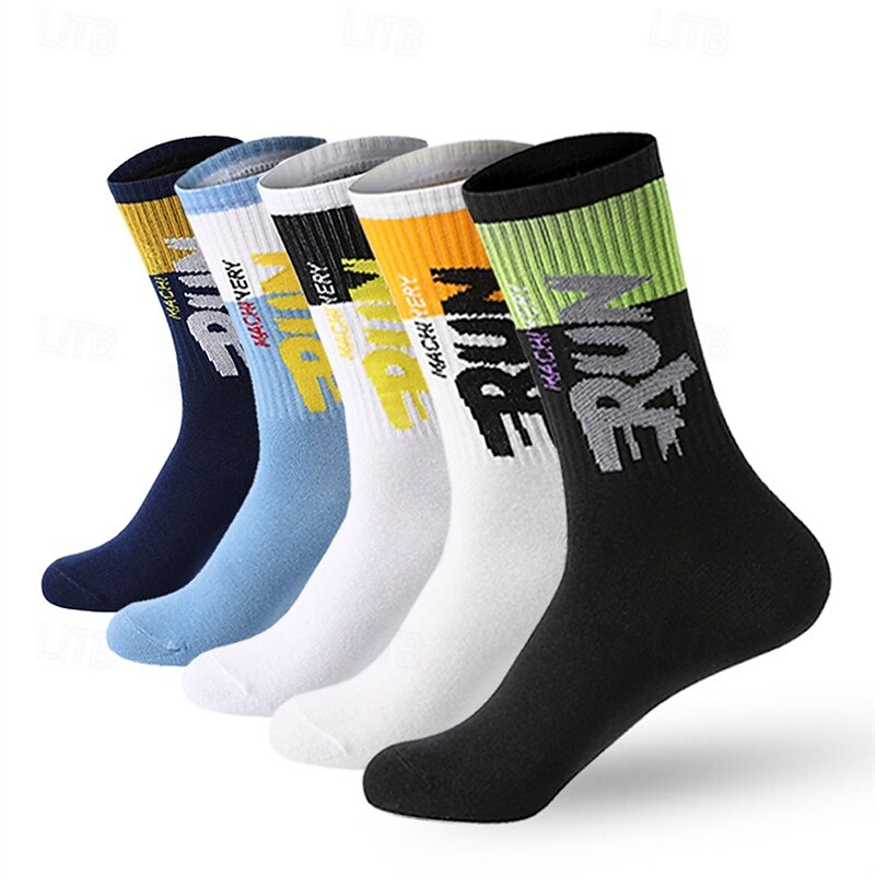 Why Choose Men's 5 Pairs Multi Packs Socks Crew Socks Running Socks Casual Socks Black White Color Color Block Letter Vacation Sports & Outdoor Daily Basic Medium Spring Fall Fashion Casual?