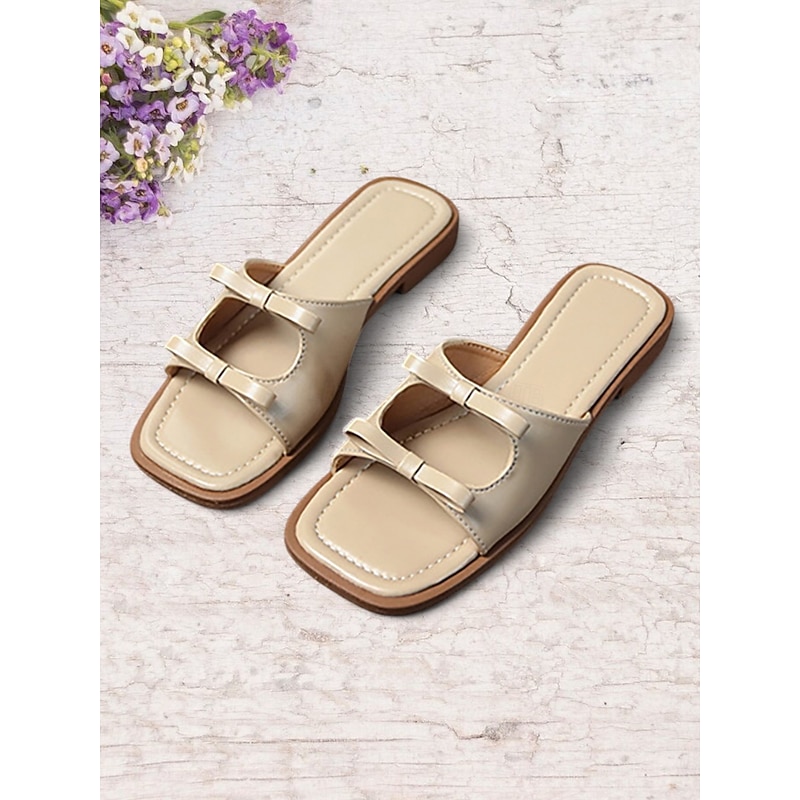sought-after ! Women's Beige Double Strap Flat Sandals - Chic Casual Slip-On Sandals for Dating & Everyday Wear