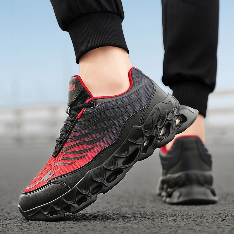 Why Choose Men's Fashion Running Sneakers, Breathable Mesh with Bold Red and Black Design, Lightweight and cushy Sports Shoes for Casual and Outdoor Activities?