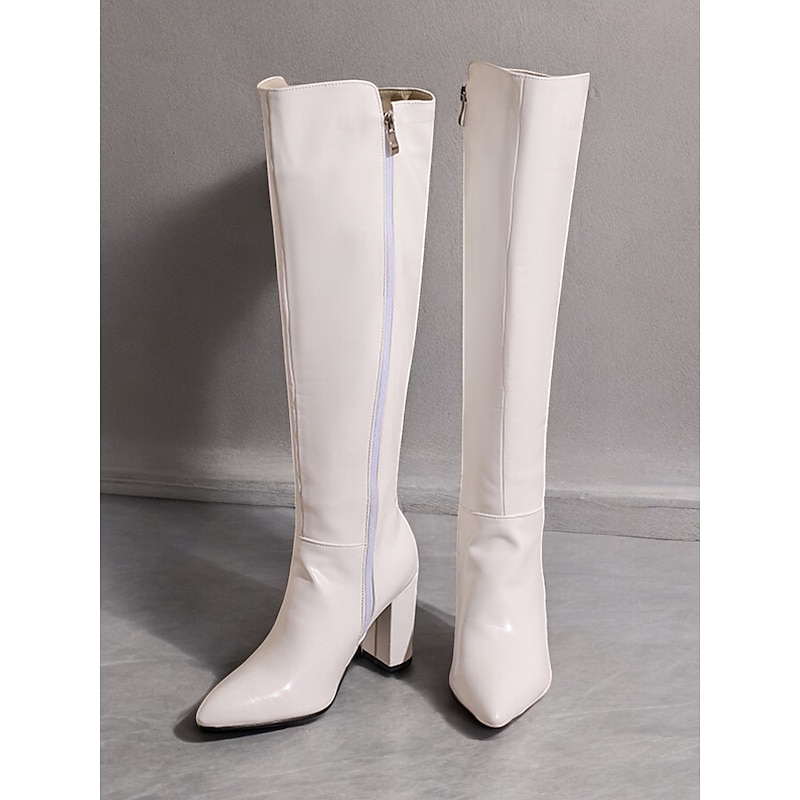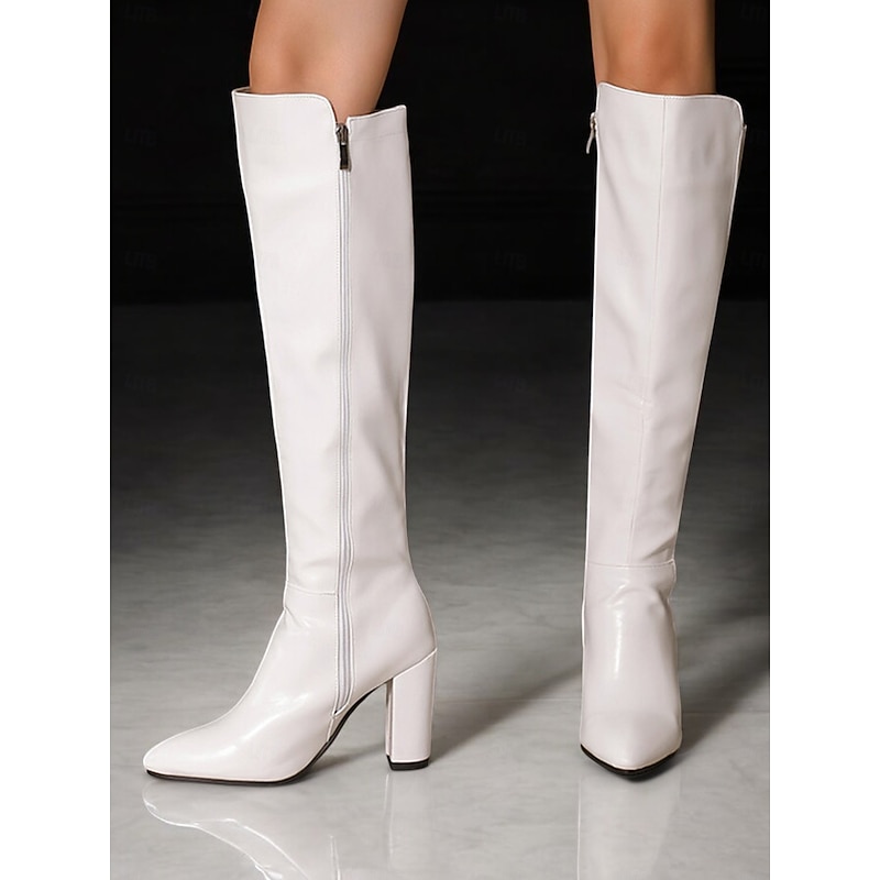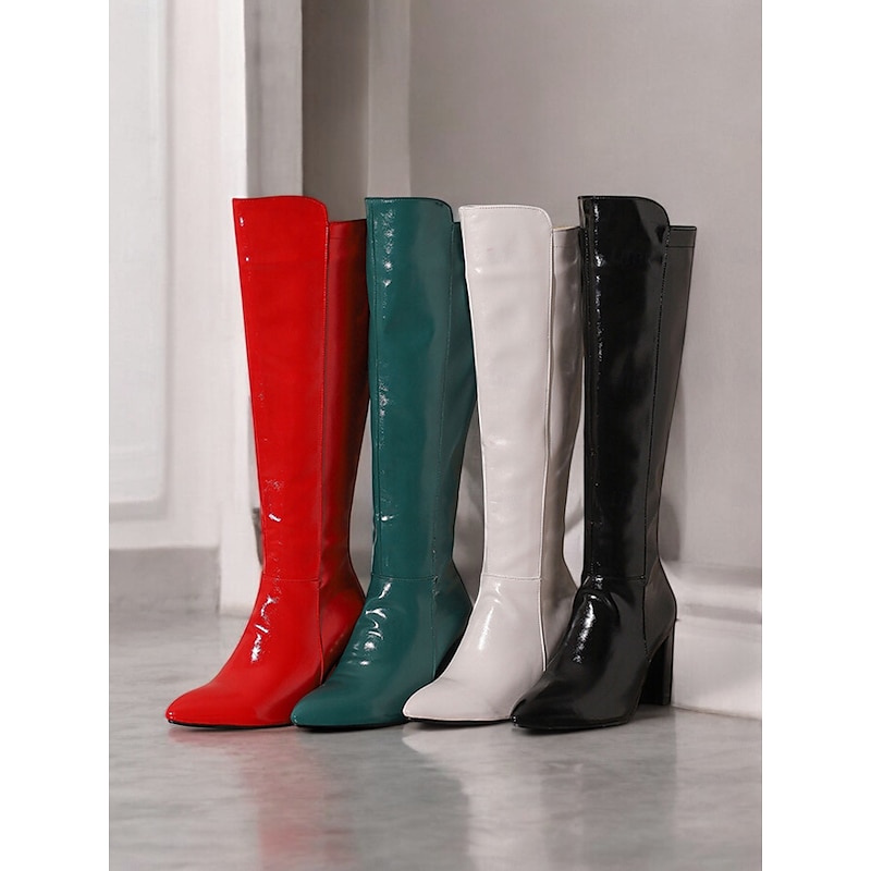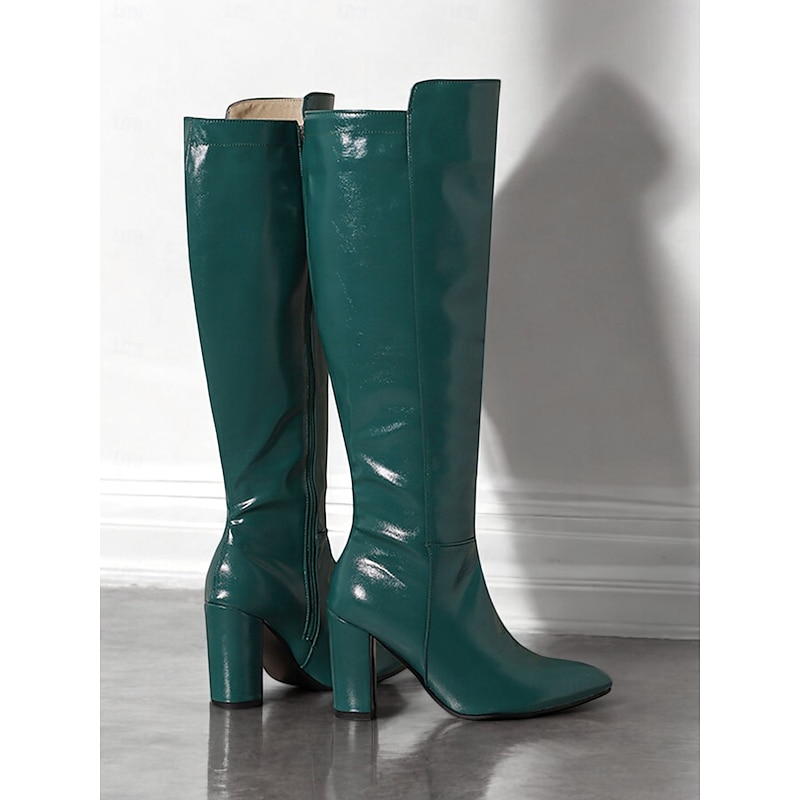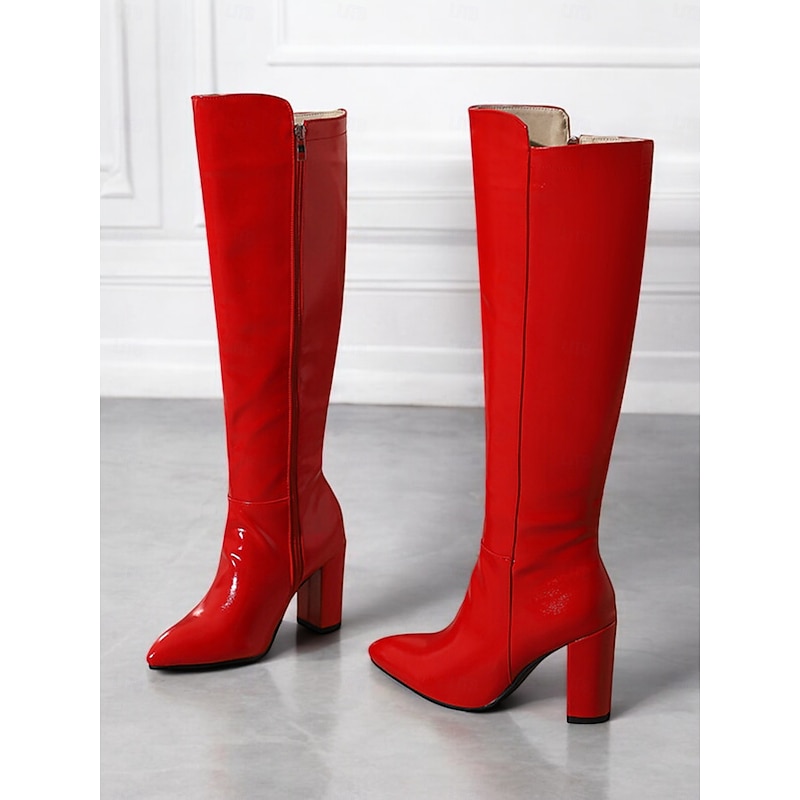 Highlights [Fabric] : Crafted from premium patent leather, these knee-high boots showcase a sleek and glossy finish, providing an elegant and polished appearance suitable for the fall and winter seasons. [Shape] : The design incorporates a classic knee-high silhouette with a pointed toe, offering a timeless and versatile style that complements both business and minimalist fashion. [Design Highlights] : Featuring a high chunky heel and a convenient side zipper, these boots not only ensure a modern and sophisticated look but also provide comfort and ease of wear. The boots' modern silhouette makes them versatile for both casual and formal occasions. [Occasions] : Ideal for work, office settings, fashionable evening wear, and special occasions. These boots seamlessly transition from day to night, making them a chic addition to any wardrobe. [Sizes] : Available in various sizes ranging from US5.5 to US10.5, these boots cater to a diverse range of preferences, ensuring a perfect fit for every contemporary woman. Perfect for everyday use. excellent materials and excellent craftsmanship ensure long-lasting durability.