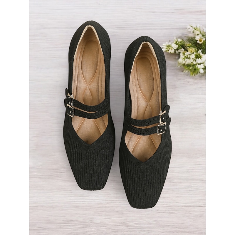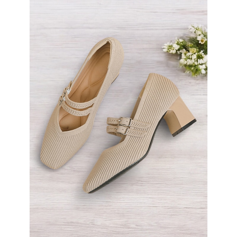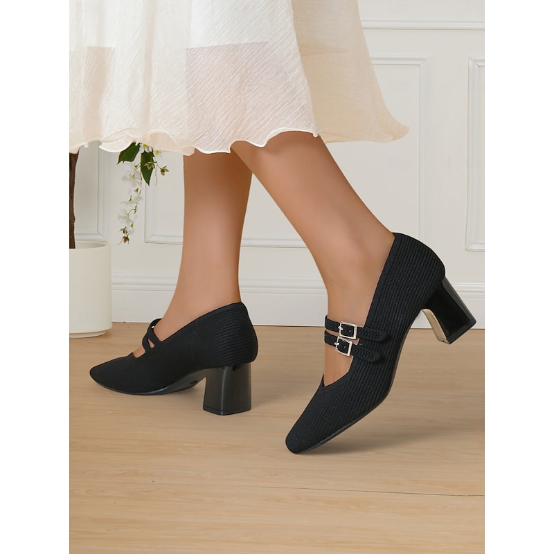 Why Choose Breathable Fly-knit Mary Jane Pumps with Double Buckle Detail and Chunky Heel, Elegant Style for Women, Ideal for Work, Events and Formal Occasions?