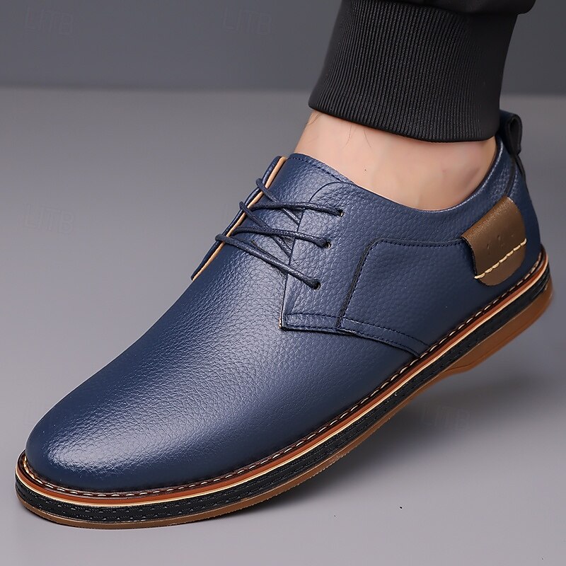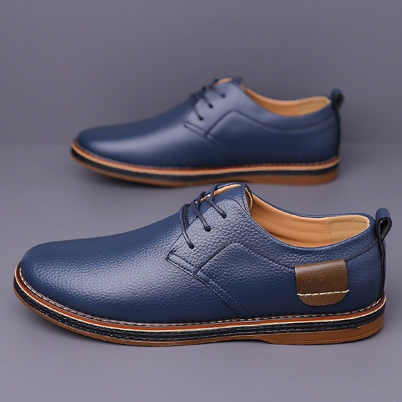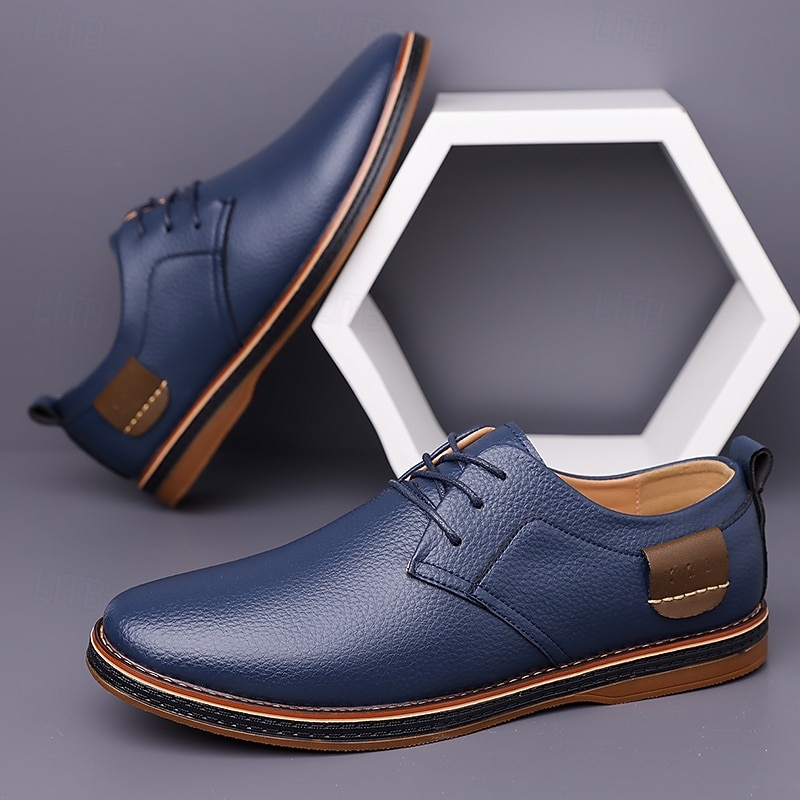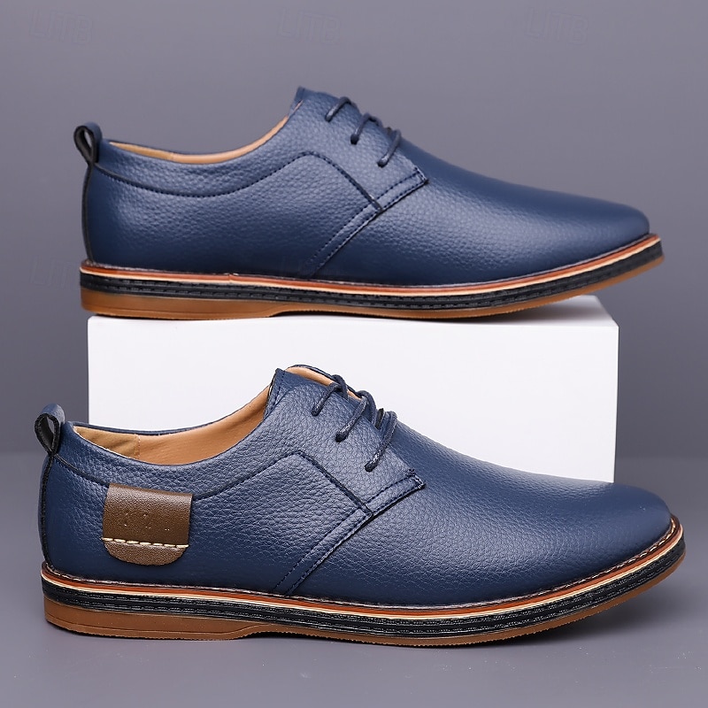 More information about Men's Casual Faux Leather Oxford Shoes in Navy Blue with Lace-Up Design, plush and sleek for Everyday Wear