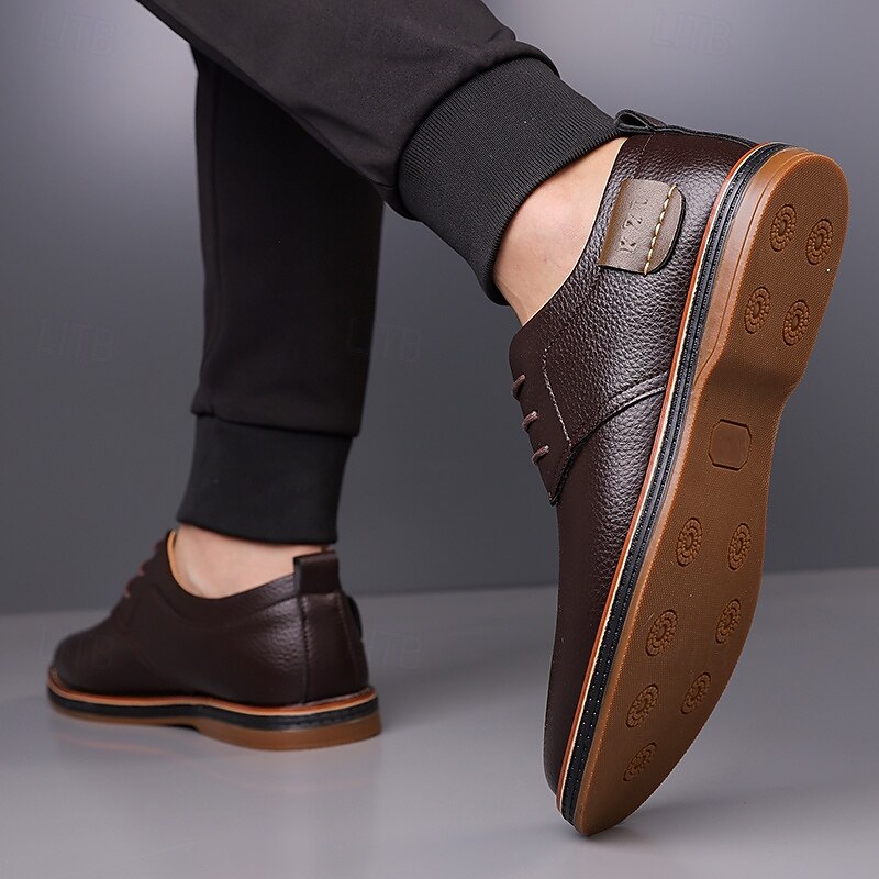 : These shoes showcase a timeless lace-up style complemented by a smooth, polished exterior that exudes elegance. The durable rubber outsole is slip-resistant, offering excellent grip and stability on various surfaces.