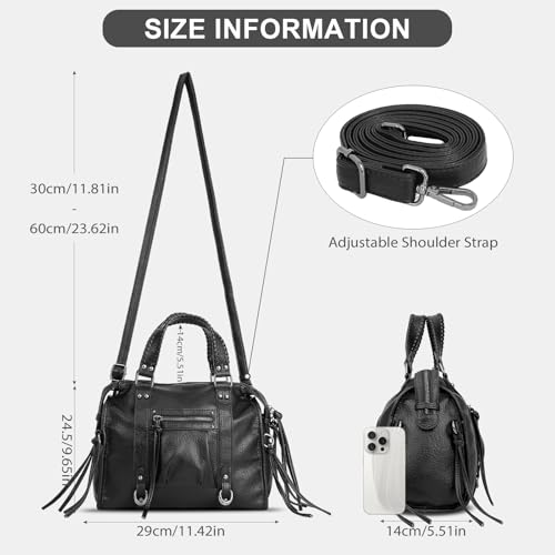 Origin: ImportedClosure type: ZipperLining: PolyesterTrendy City Bag: The city bag is made of soft vegan leather, which is wear-resistant and good in texture, durable to use.Adjustable Shoulder Strap: This small tote bag comes with 1 removable shoulder strap, allowing you to use it as a shoulder bag, crossbody bag, or handbag.Vintage Fringe Design: The hobo bag features fringe zippers with a vintage design is reminiscent of the popular 90s trend, classic and contemporary.Small But Roomy: Bag size: 11.42L*9.65H*5.51W; Designed with a main compartment, 1 front zip pocket and 1 interior pocket, this punk style tote bag is roomy to fit your daily belongings.Suitable Occasions: The leather shoulder crossbody bag is suitable for office, shopping, appointments, weekends, travel bags, etc. Perfect for everyday use. excellent materials and excellent craftsmanship ensure long-lasting durability.
