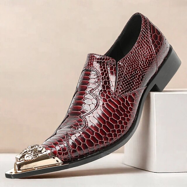 This Men's Burgundy Crocodile Pattern Leather Dress Shoes with Metal Pointed Toe, Elegant Slip-On Loafers for Banquets, Business Events and Special Occasions combines elegant design with practical functionality. Every detail has been carefully considered to ensure you get the premier possible experience. The superior construction means this product will serve you well for years to come.