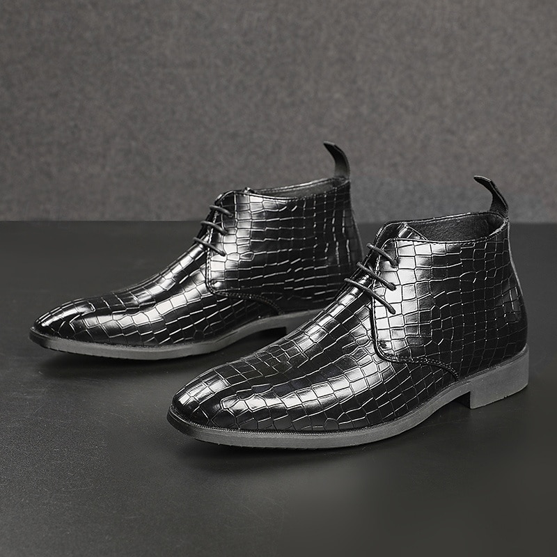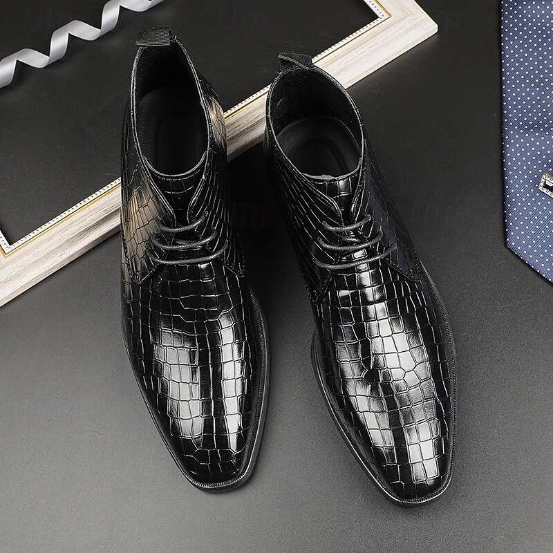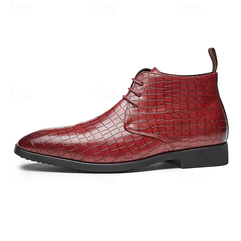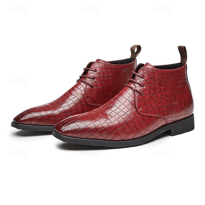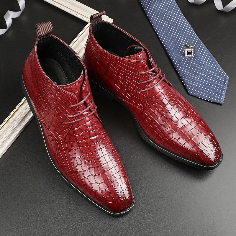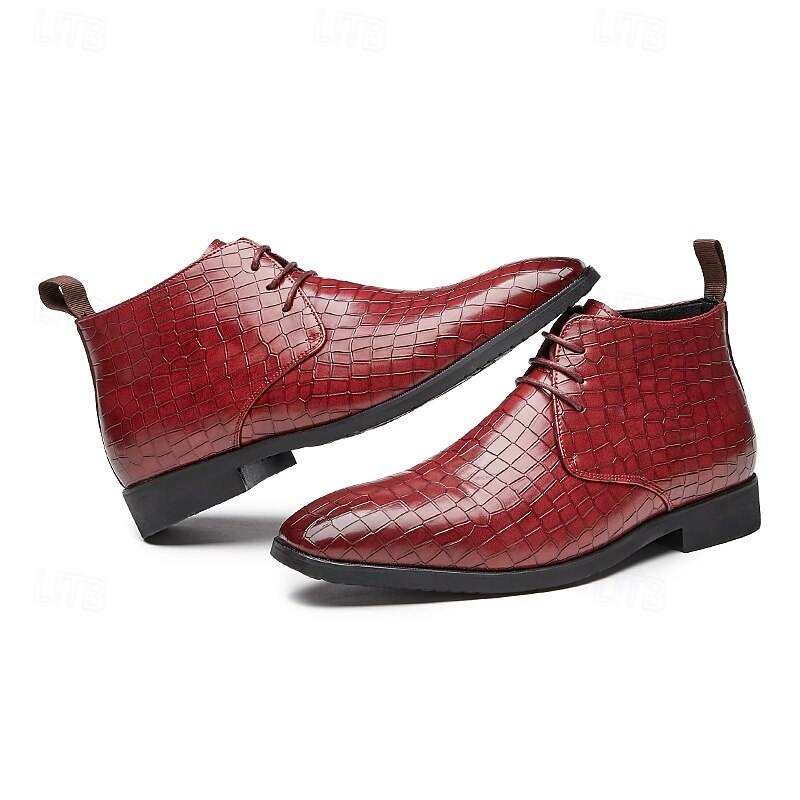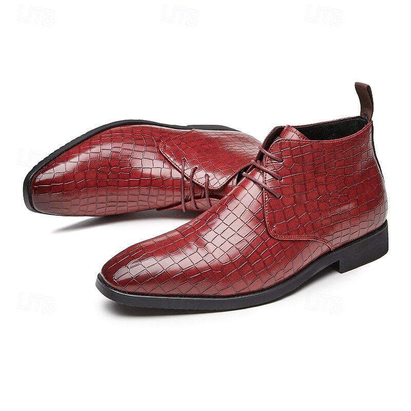 sought-after ! Men's Red Crocodile Pattern Faux Leather Ankle Boots – Fashion Lace-Up Dress Shoes for Parties, Nightlife and Special Occasions