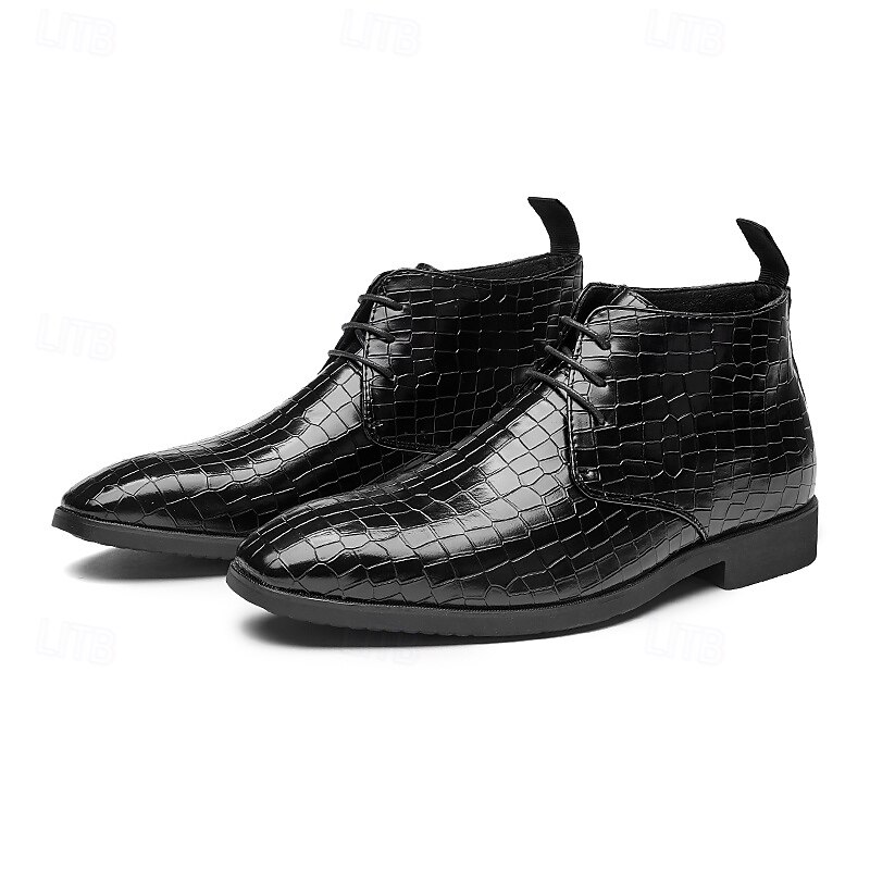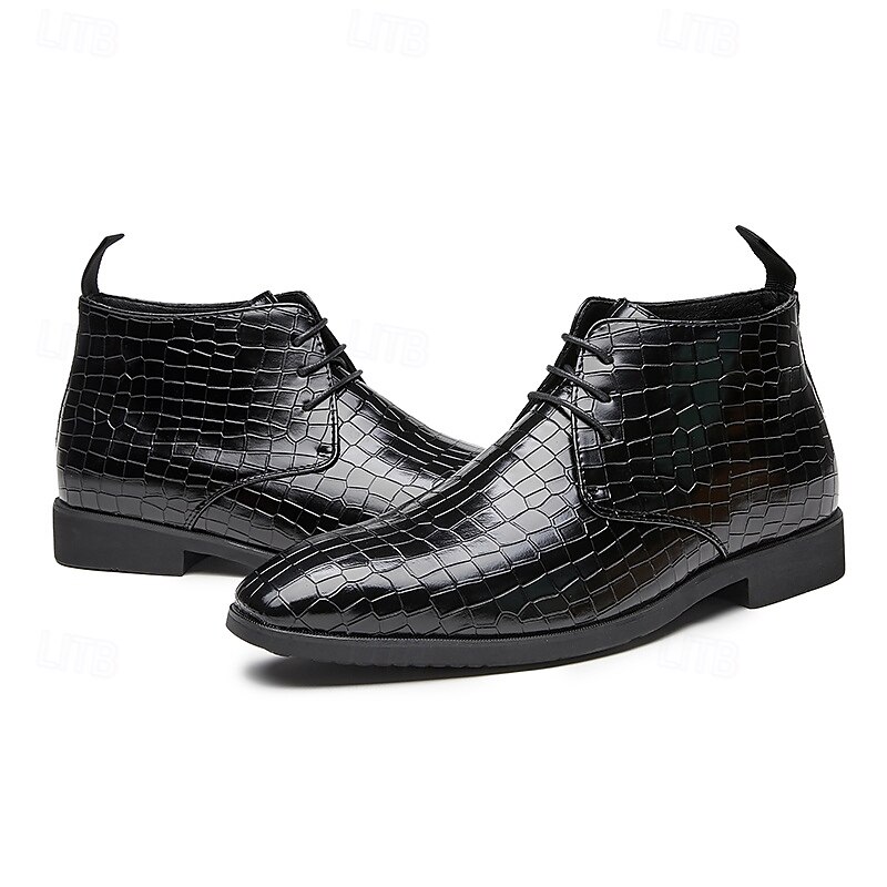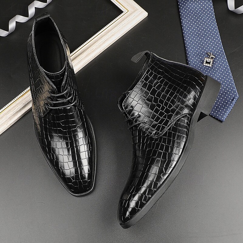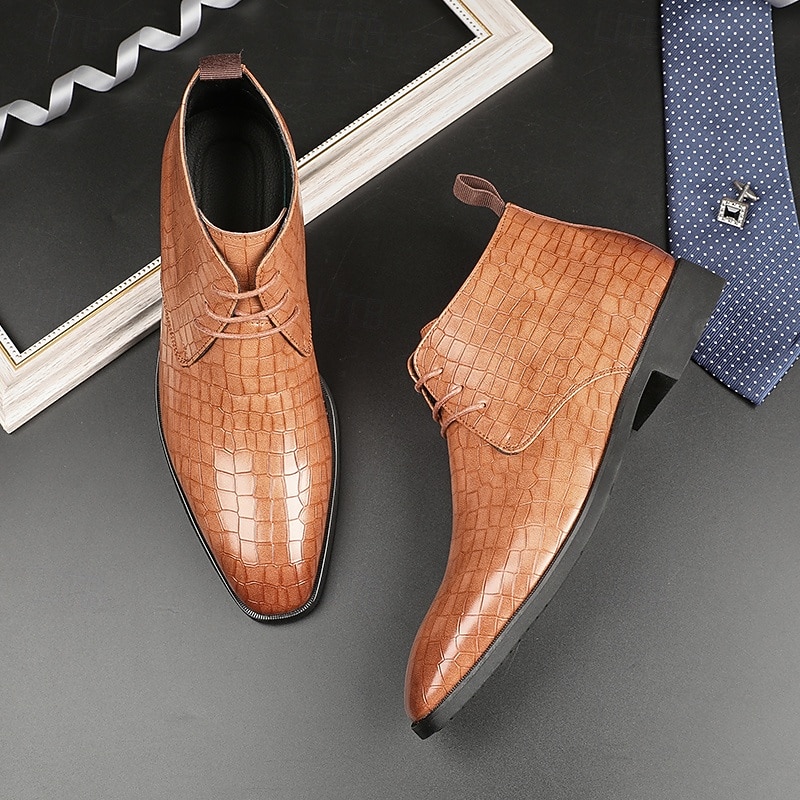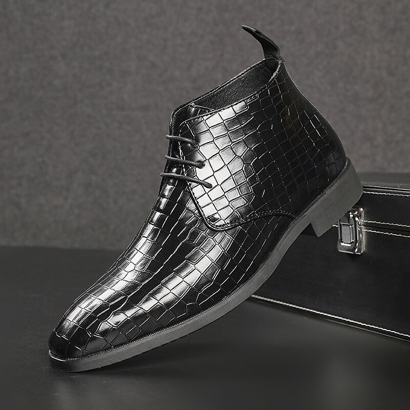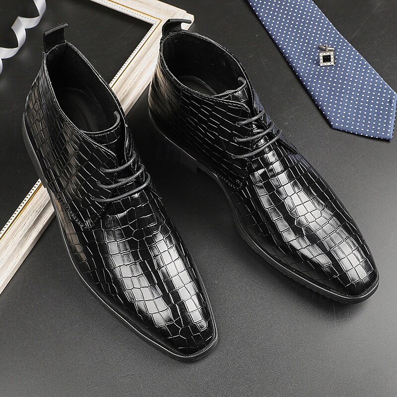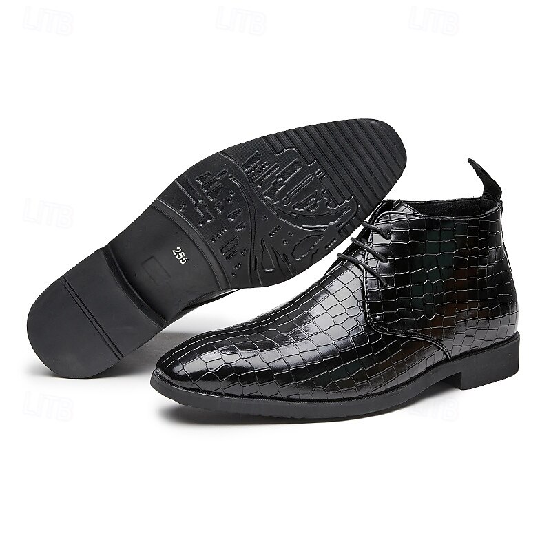 sought-after ! Men's Red Crocodile Pattern Faux Leather Ankle Boots – Fashion Lace-Up Dress Shoes for Parties, Nightlife and Special Occasions