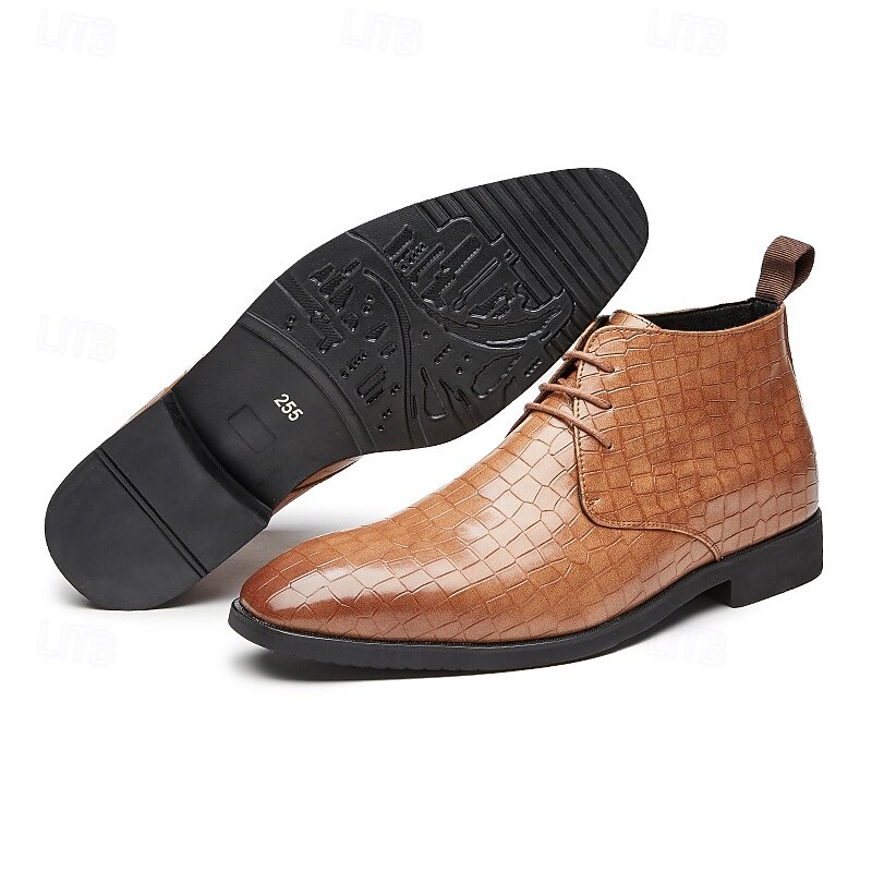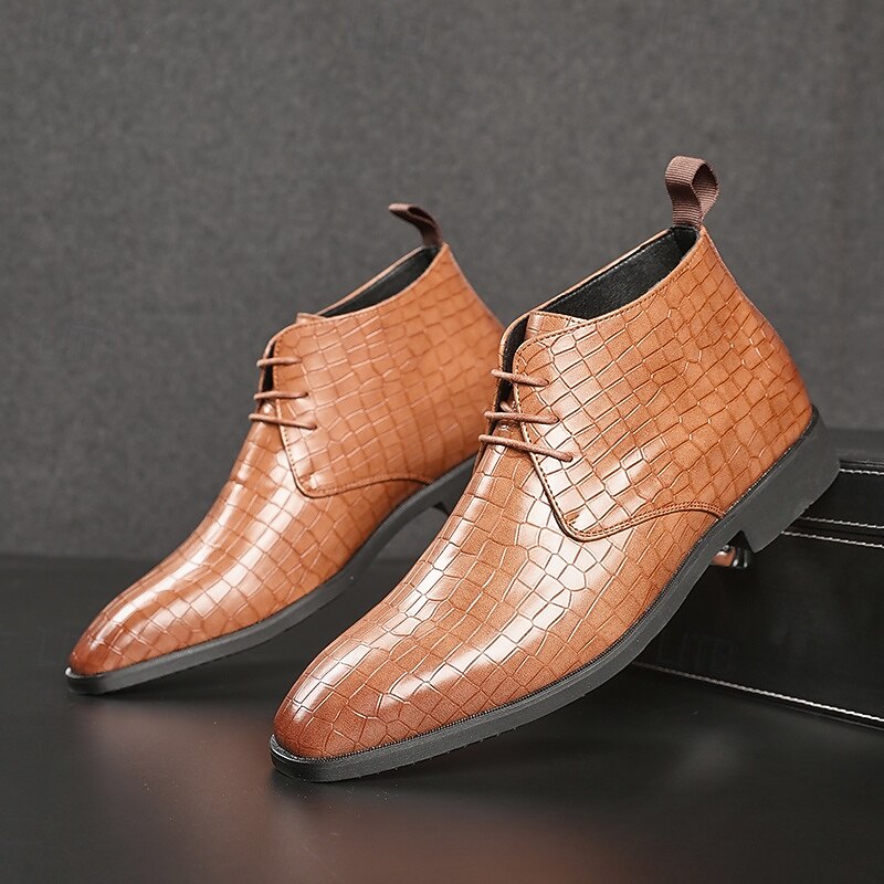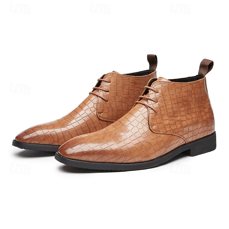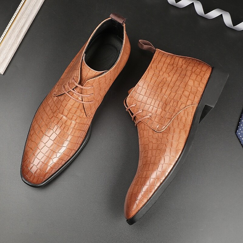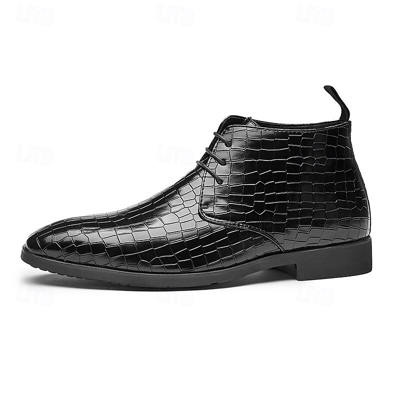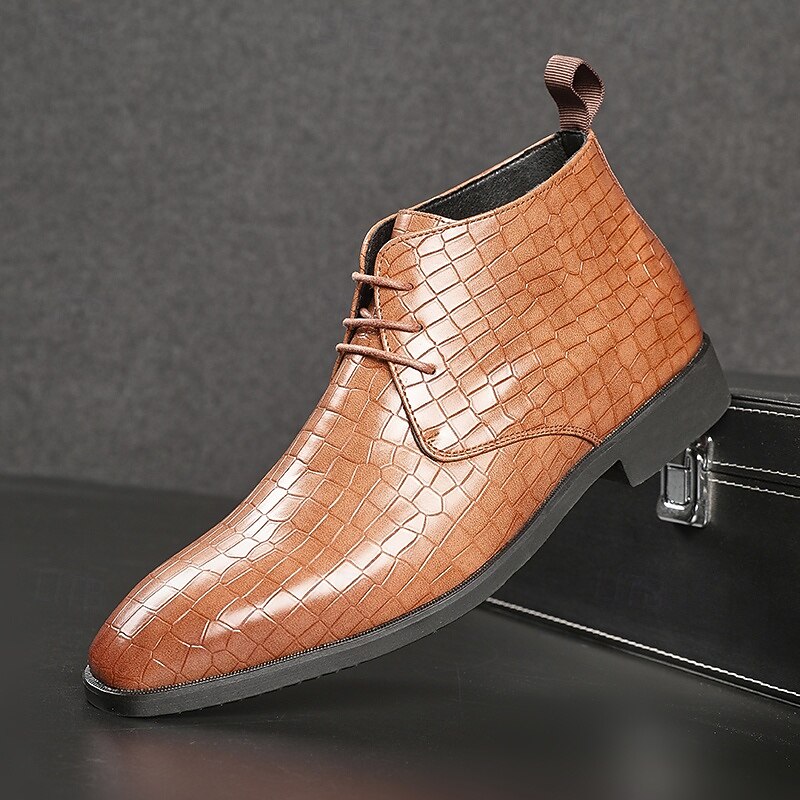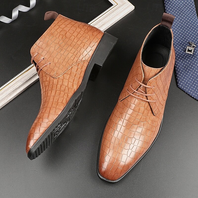 sought-after ! Men's Red Crocodile Pattern Faux Leather Ankle Boots – Fashion Lace-Up Dress Shoes for Parties, Nightlife and Special Occasions