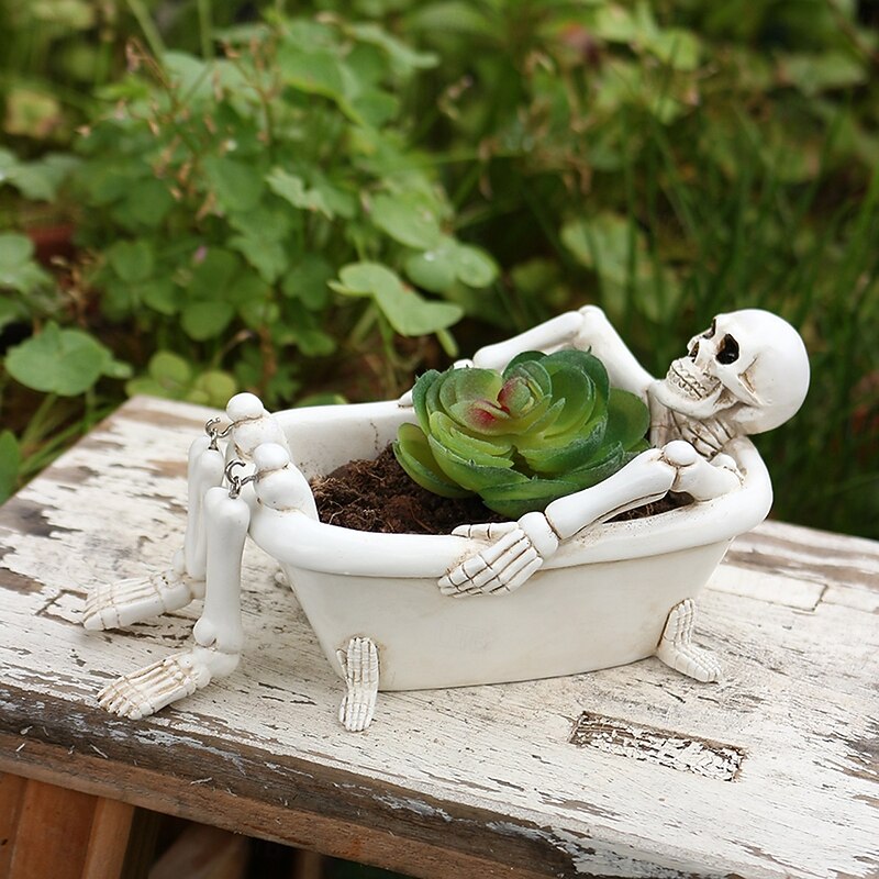 $20.99 - Halloween Gothic Bathtub Skull Flower Pot Statue with Drainage Holes Resin Sculpture with Skeleton Design Novelty Planter Suitable for Patio, Garden, Home Decoration 2025. Shop for cheap Halloween Hanging & Tabletop Decorations online? Buy at lightinthebox.com on sale today!