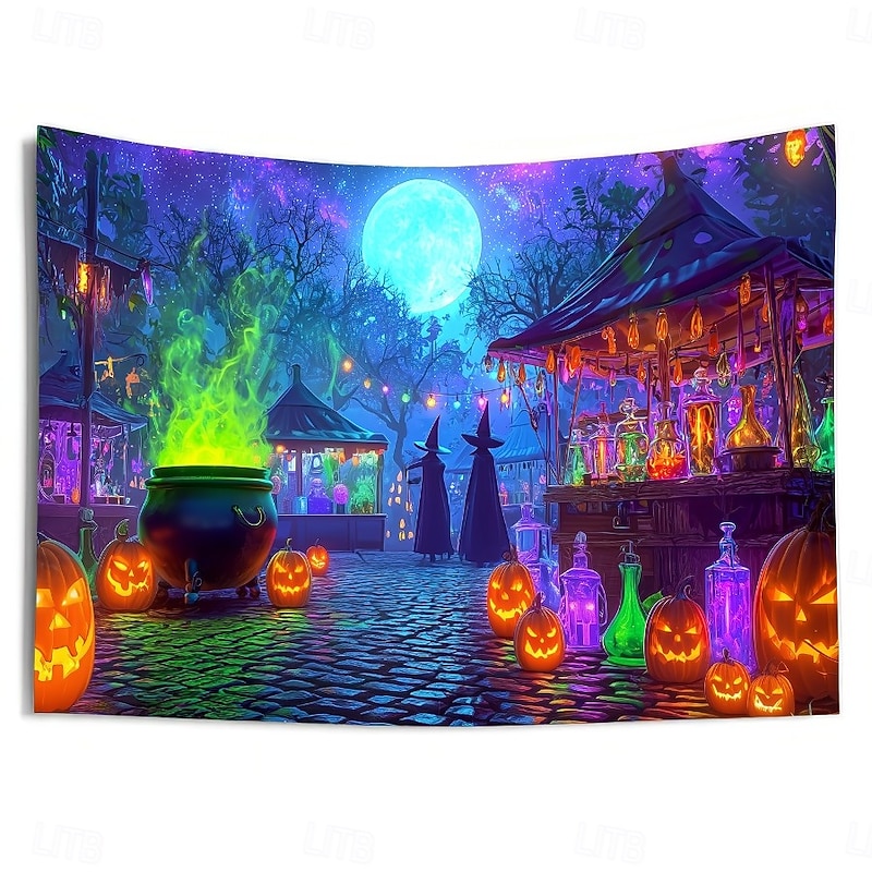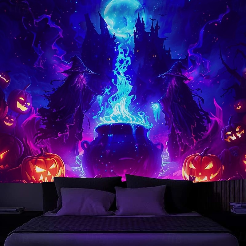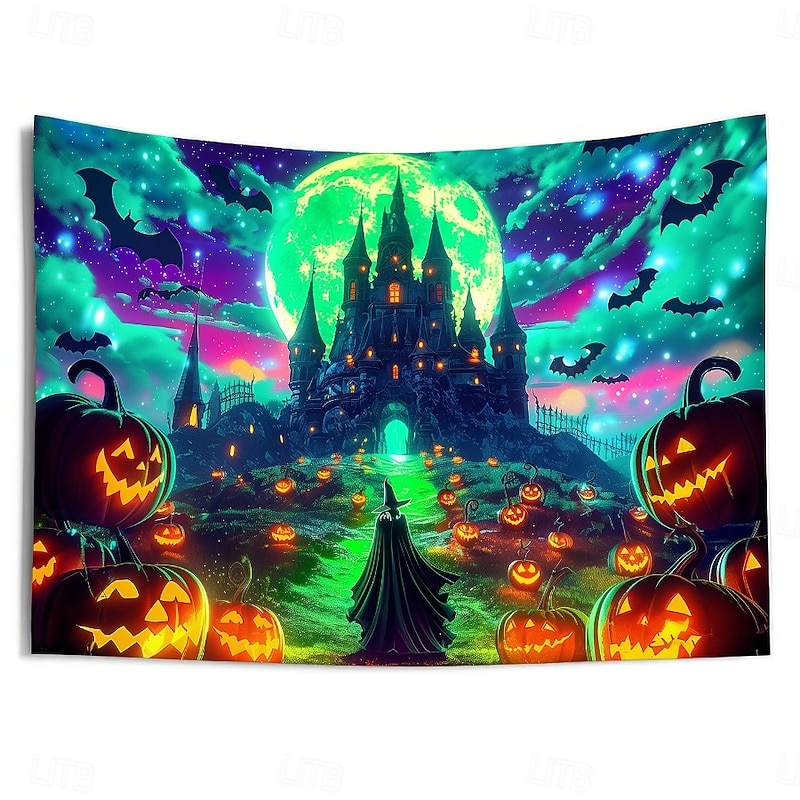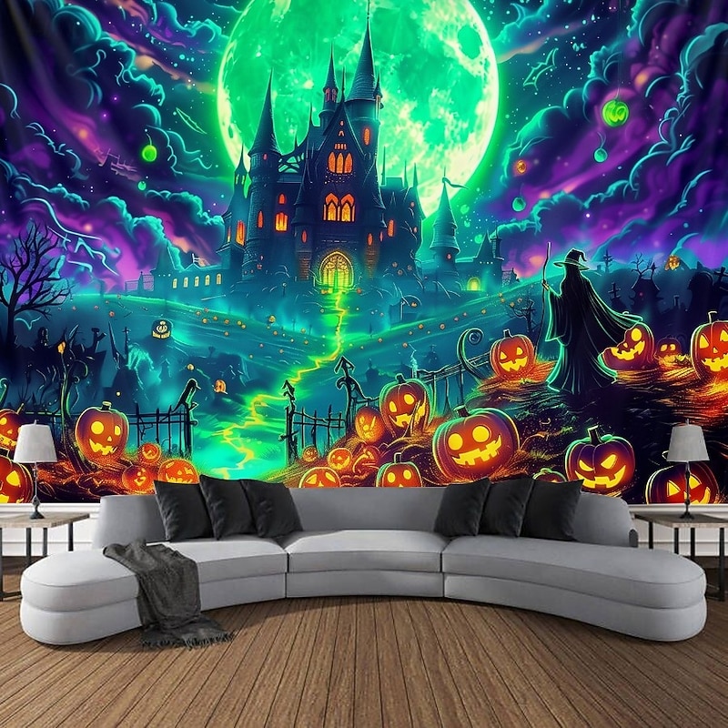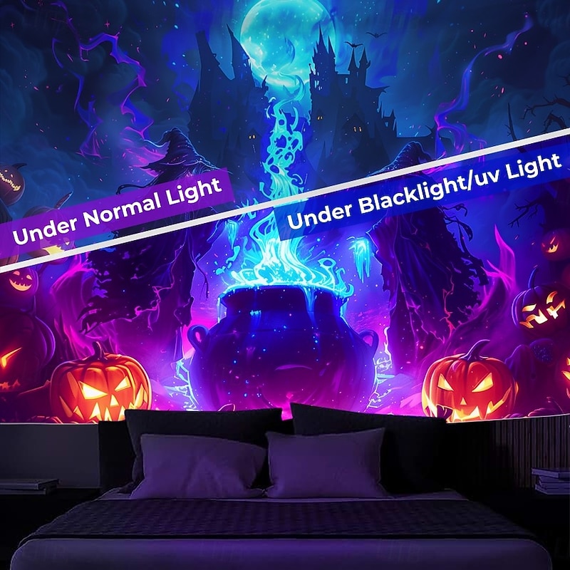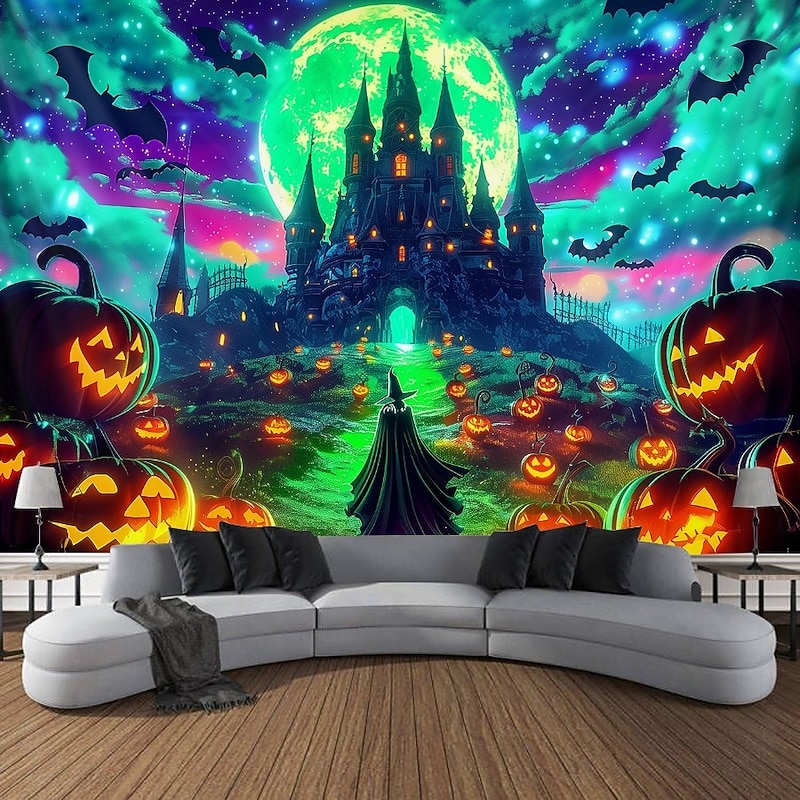 $13.99 - Halloween Blacklight Wall Tapestry – UV Reactive Glowing Moon over Haunted Forest Neon Colors Spooky Night Scene, Glow in the Dark Gothic Wall Hanging for 2025 Halloween Home and Party Decoration 2025. Shop for cheap Halloween Wall Tapestries online? Buy at lightinthebox.com on sale today!