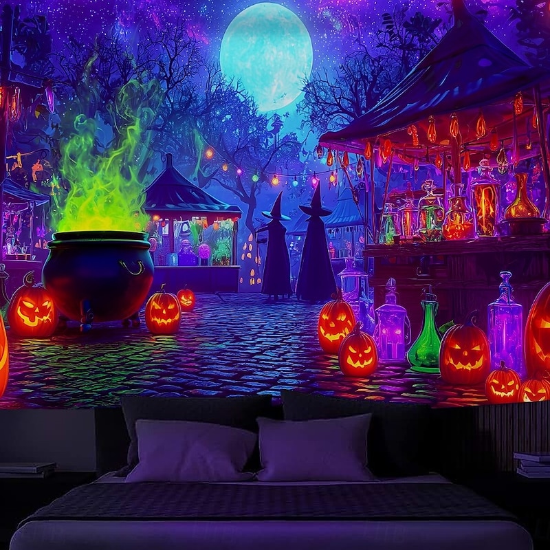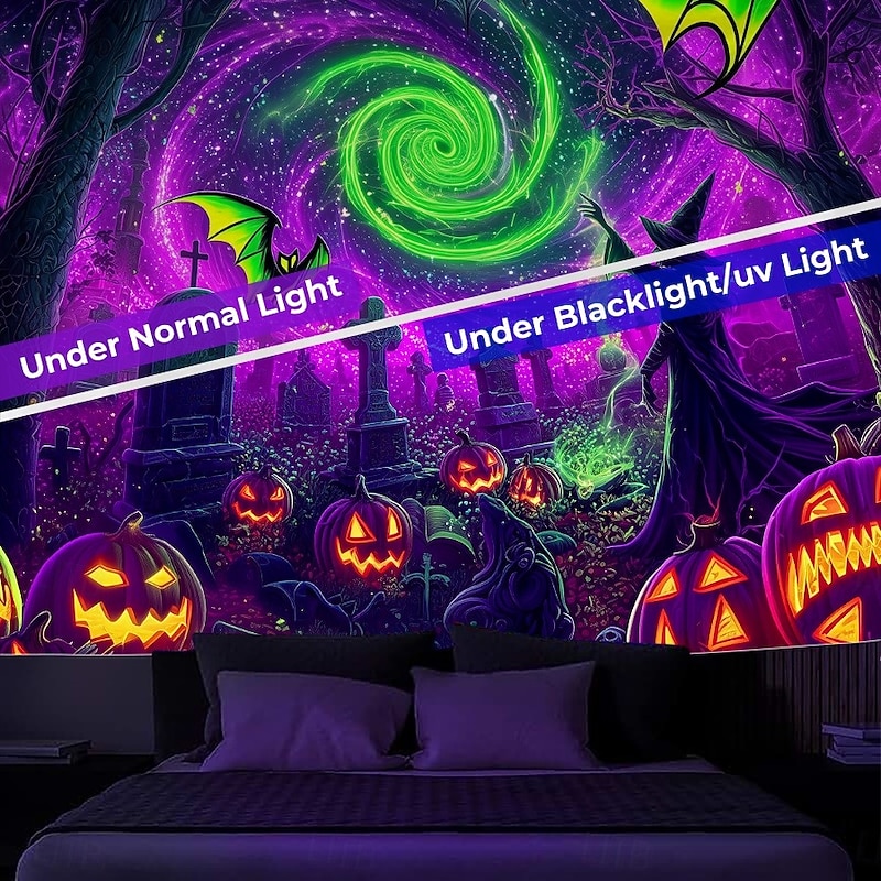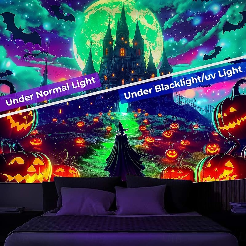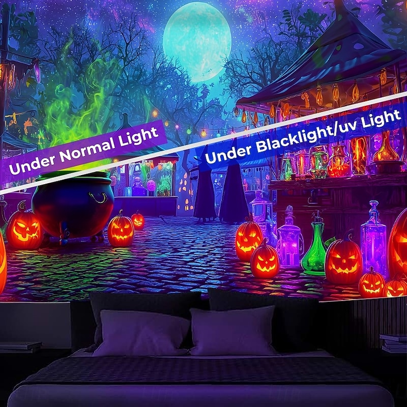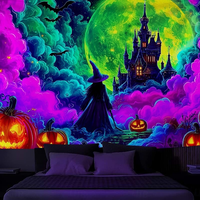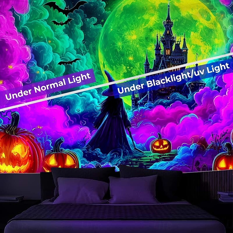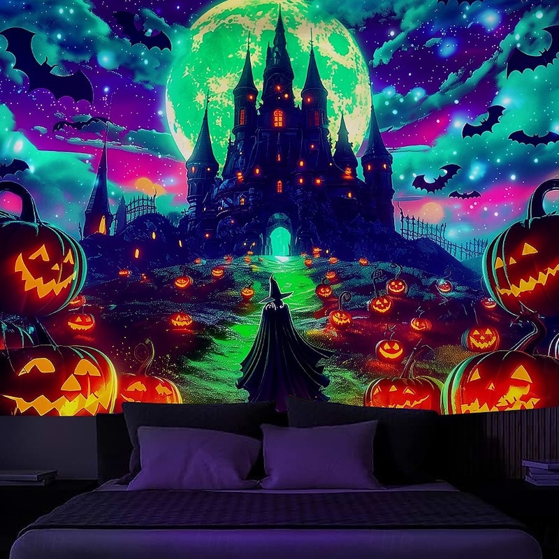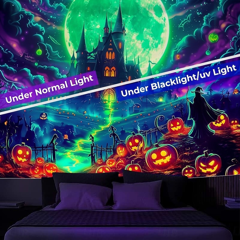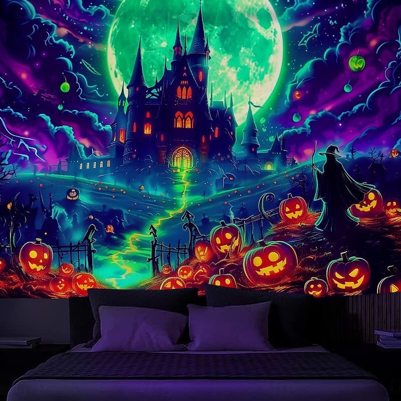 Why Choose Halloween Blacklight Wall Tapestry – UV Reactive Glowing Moon over Haunted Forest Neon Colors Spooky Night Scene, Glow in the Dark Gothic Wall Hanging for 2025 Halloween Home and Party Decoration?