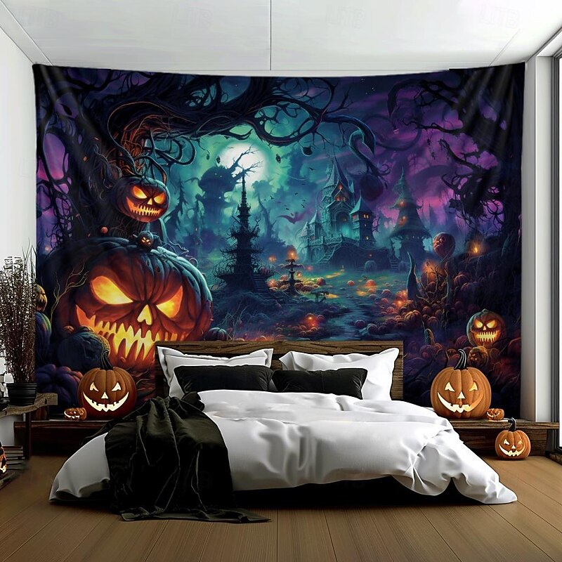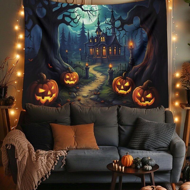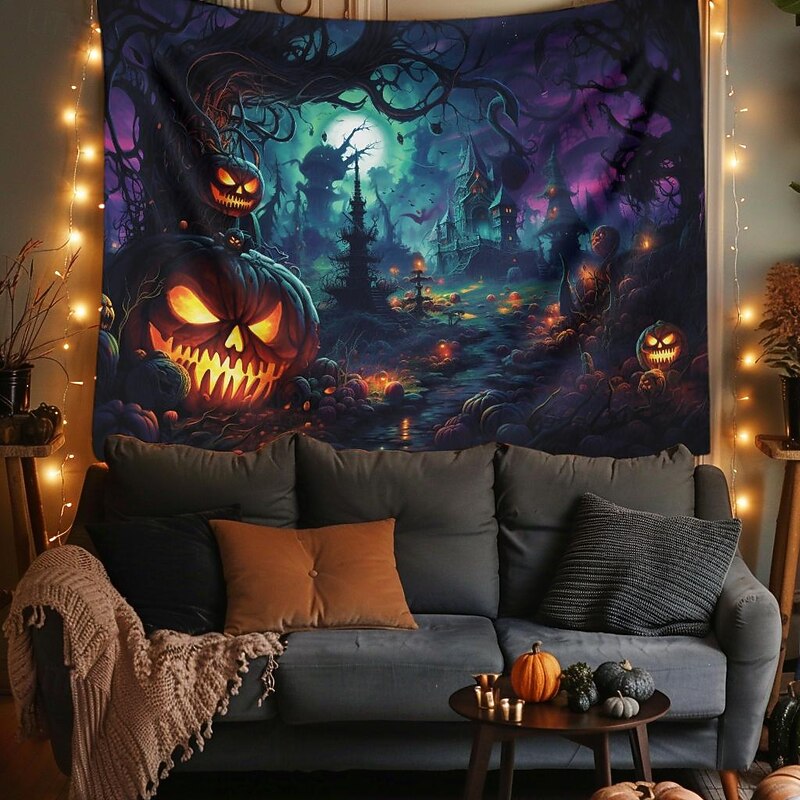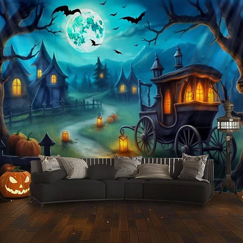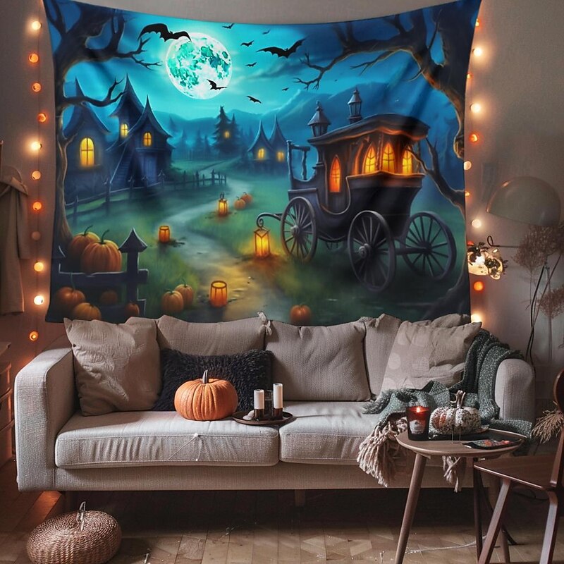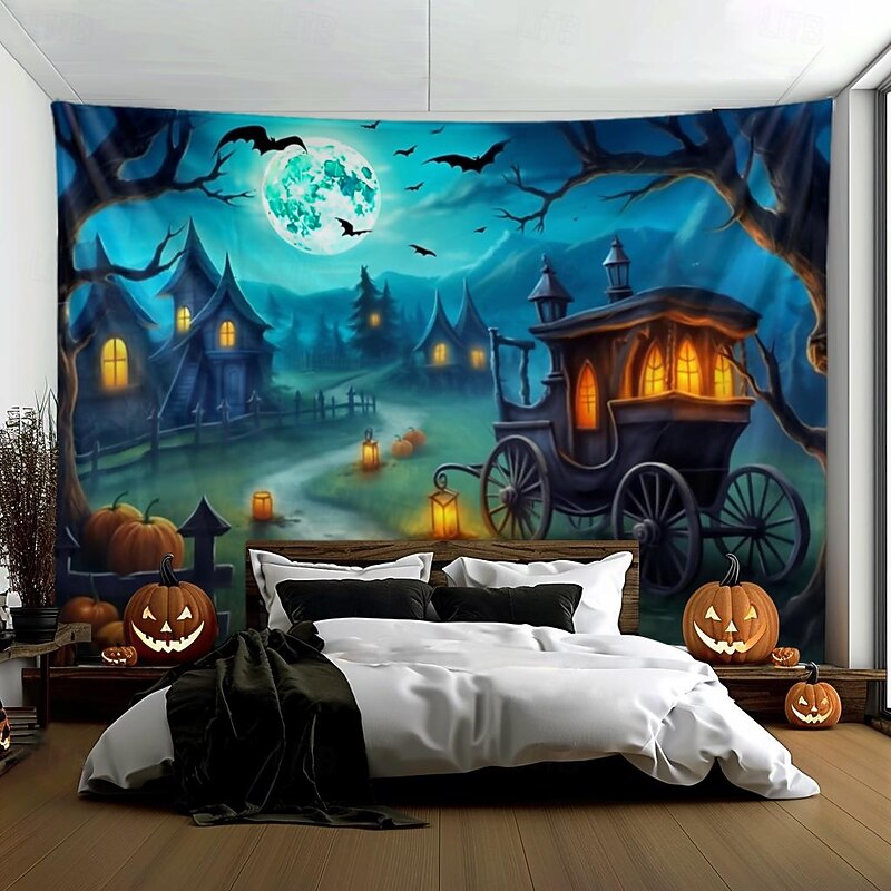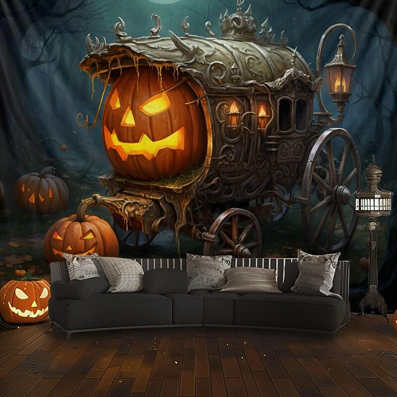 Halloween Decorations Pumpkin Carriage Hanging Tapestry Wall Art Large Tapestry Mural Decor Photograph Backdrop Blanket Curtain Home Bedroom Living Room
