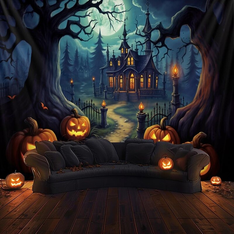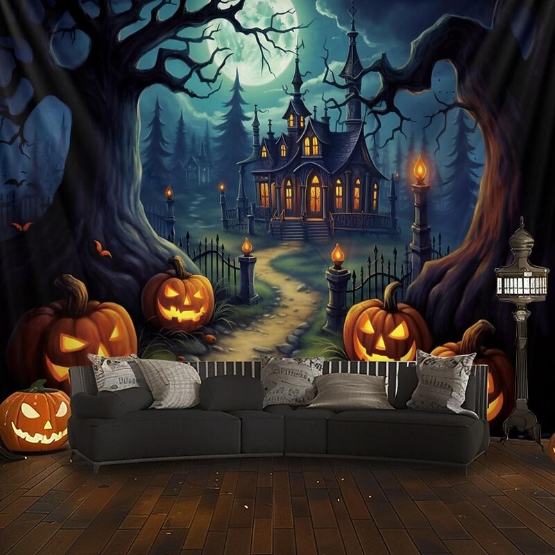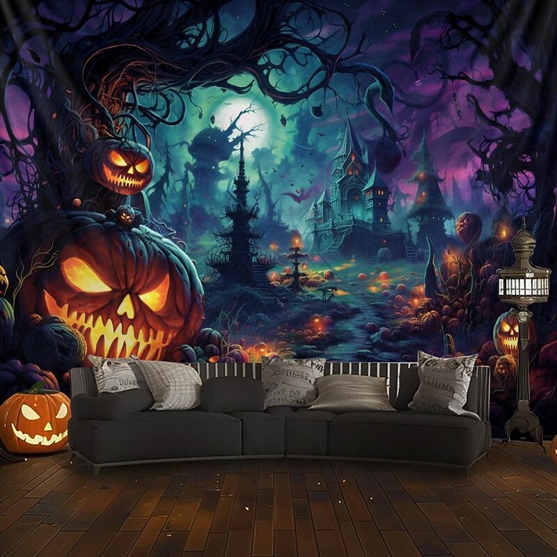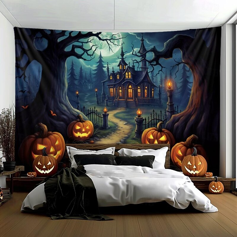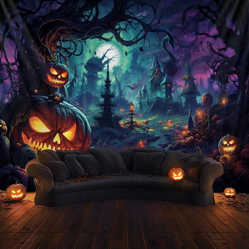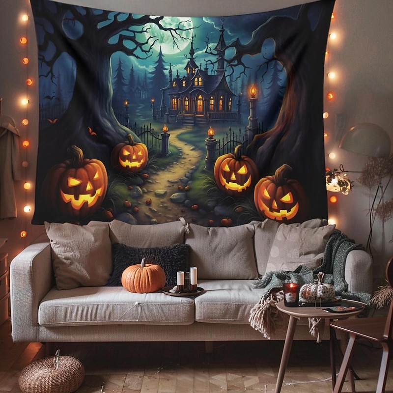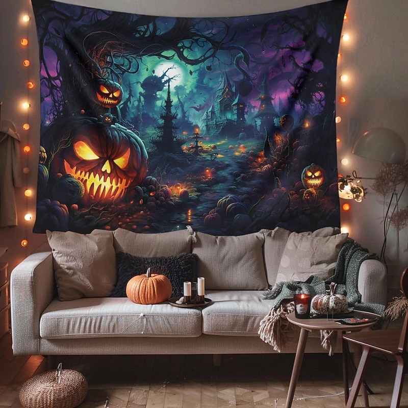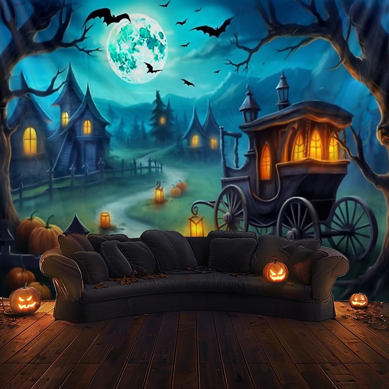 Halloween Decorations Pumpkin Carriage Hanging Tapestry Wall Art Large Tapestry Mural Decor Photograph Backdrop Blanket Curtain Home Bedroom Living Room