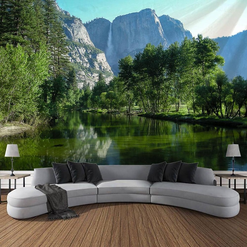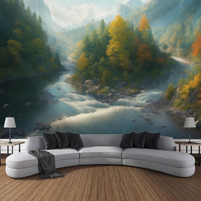Nature Hanging Tapestry Wall Art Large Tapestry Mural Decor Photograph Backdrop Blanket Curtain Home Bedroom Living Room Decoration Oil Painting River