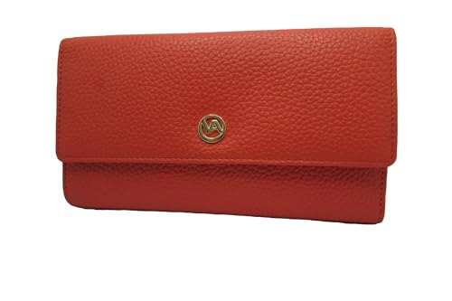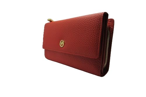 Italian Leather Vera Pelle Women's Wallet, 12 Card Slots, Red Cretta Made in Italy (cretta red)