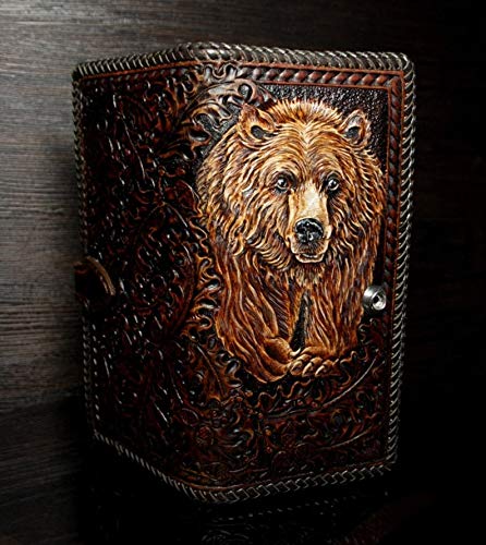 Men's 3D Genuine Leather Wallet, Long wallet, Biker wallet, Hand-Carved, Hand-Painted, Leather Carving, Custom wallet, Personalized wallet, Bear 7