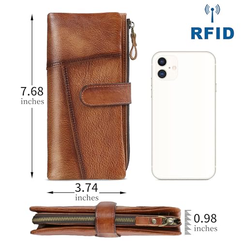 LETEULO Women's RFID Blocking Clasp Wallet Vintage Hand Rubbing Wallets Organizer (Brown) AND Women Leather Shoulder Bag Vintage Shoulder Bag(Brown)