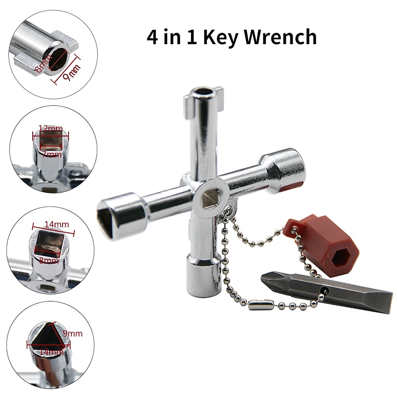 4 In 1 Cross Key Wrench Multifunctional Universal Triangle Train Electrical Elevator Cabinet Door Plumber With Accessories 1
