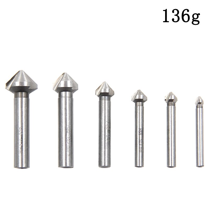 sought-after ! Round Shank 6pcs/Set 3 Flute HSS Hard Metals Three Edge Chamfer Chamfering End Mill Cutter Bit Countersink Drill Bit