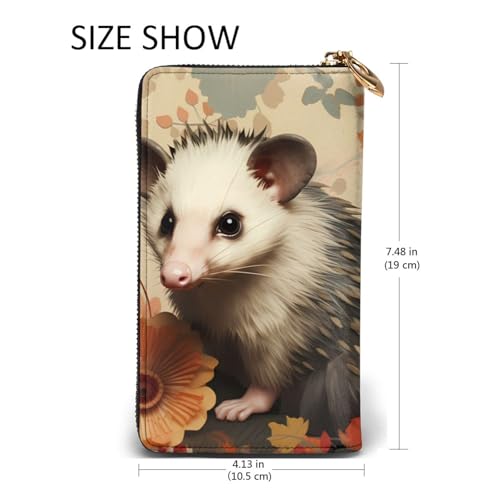 Opossum Pattern Picture Leather Long Clutch Wallet for Fashionable Girls and Women - robust, contemporary, and Functional, Black, One Size