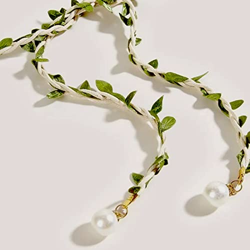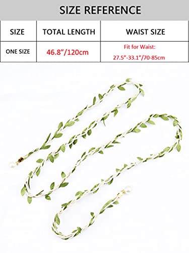 Artificial Leaf Skinny Belts Twisted Braided Waist Rope with Faux Pearl for Women Dresses DIY Wreath Gift Wraping Craft