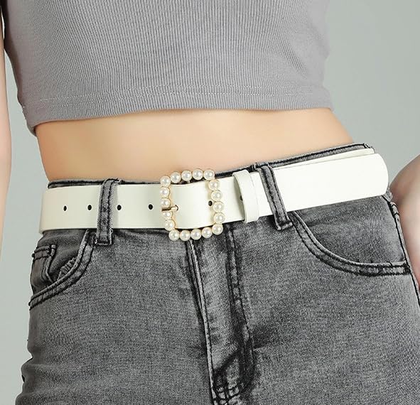 Women's Elegant Pearl Buckle Leather Belts for Jeans, Dresses, Pants 4