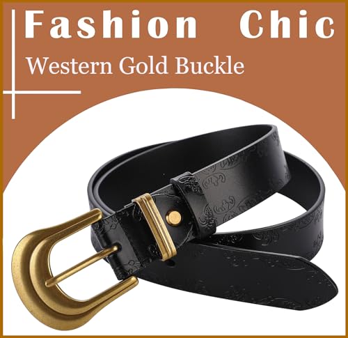ALAIX Western Leather Belts for Women Cowboy/Cowgirl Belt Big Gold Buckle Belt Black Leather Belt Pants Jeans Belts for Women 1