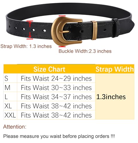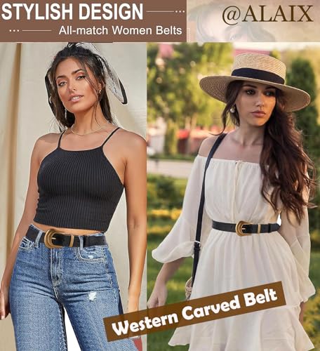 sought-after ! ALAIX Western Leather Belts for Women Cowboy/Cowgirl Belt Big Gold Buckle Belt Black Leather Belt Pants Jeans Belts for Women