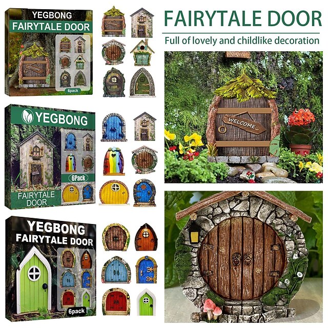 6pcs Fairy Garden Door for Tree Fairy Garden Outdoor Decor Accessories Fairytale Tiny House Doors Mini Gift for Multicolor