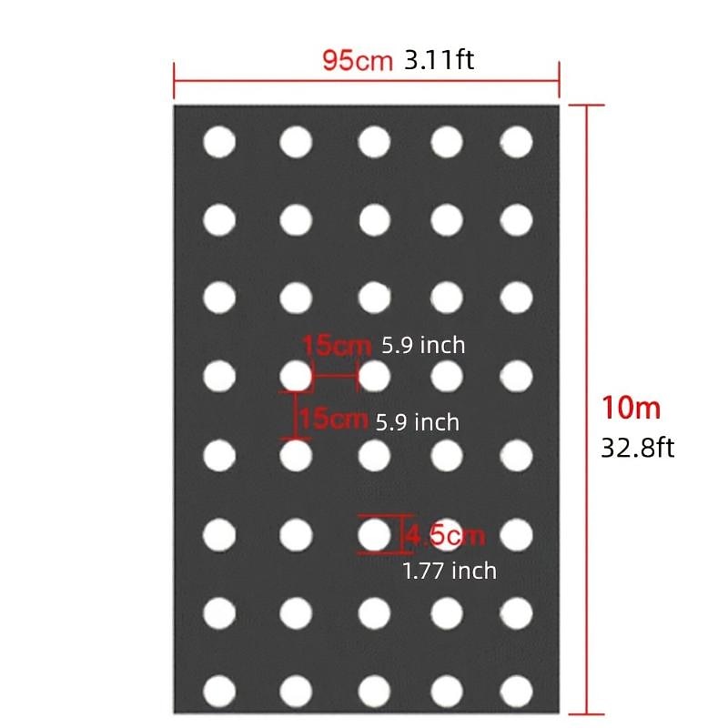 Highlights - High-quality PE material used, ensuring no odor and robust tensile strength - Wear-resistant material adds to the durability of the product - Perforated film size: 0.95x10m with 5 holes, hole space of 15cm and hole diameters of 4.5cm - Strong water permeability of plastic mulch film aids in reducing water evaporation, maintaining warmth and increasing crop yield - Multipurpose usage; can be used for Ground Surface Protection, Seedbed Base, Farm Orchard Trees Planting, Vegetable Planting, Garden Flower Planting, Horticultural landscape, Fence Guardrail, Farm picking, and more - The package includes 1pcs 0.02mm Thickness Black Agricultural Plants Perforated Film that is easy to use, convenient, and time-saving.