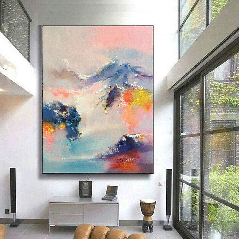 More information about Handmade Oil Painting Canvas Wall Art Decorative Abstract Knife Painting Landscape Yellow For Home Decor Rolled Frameless Unstretched Painting