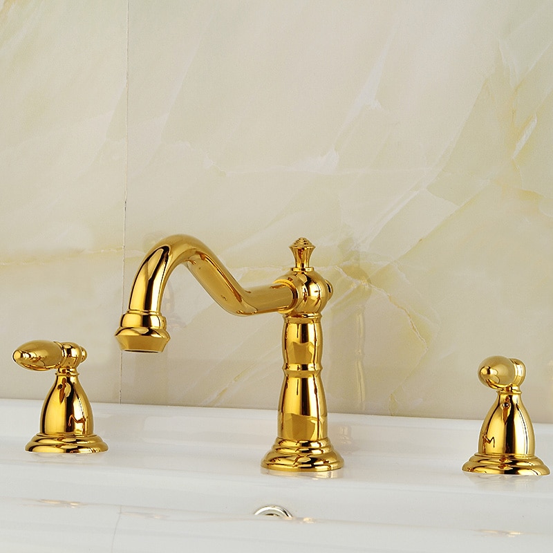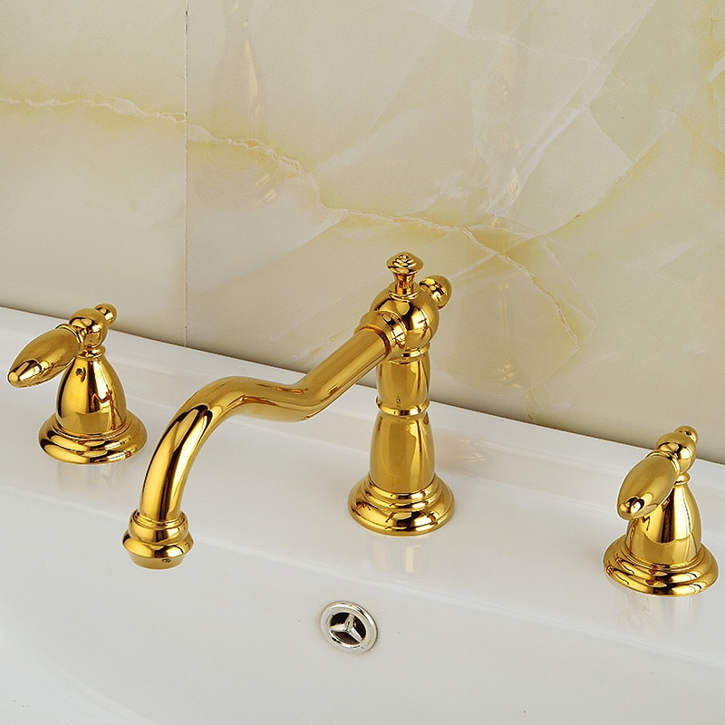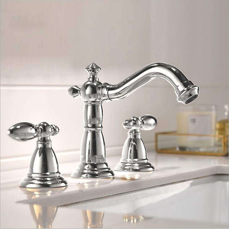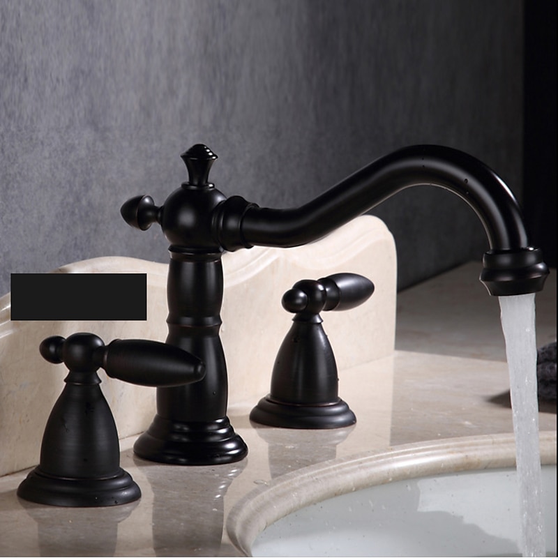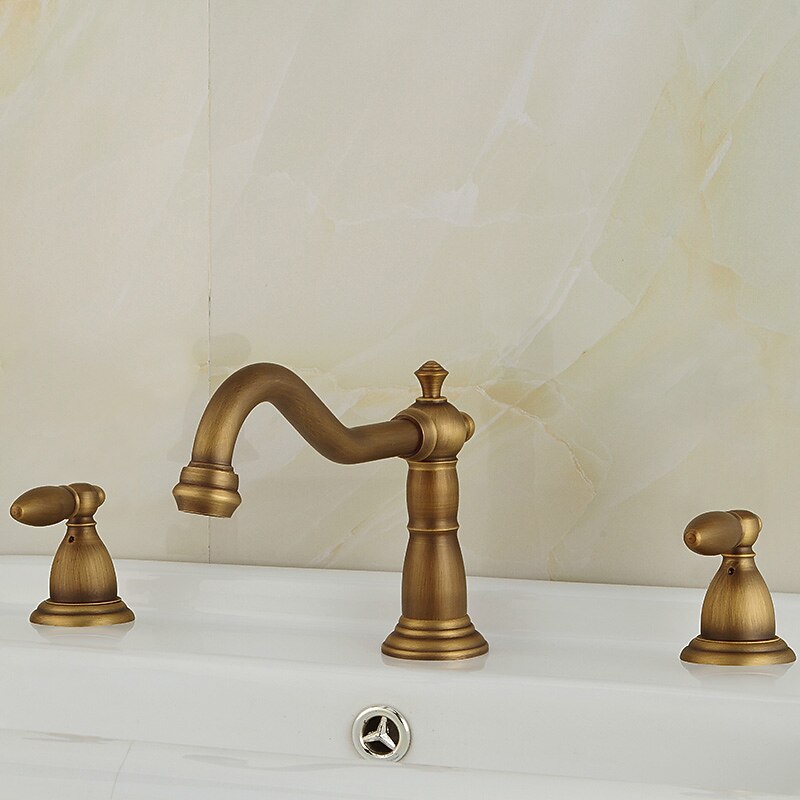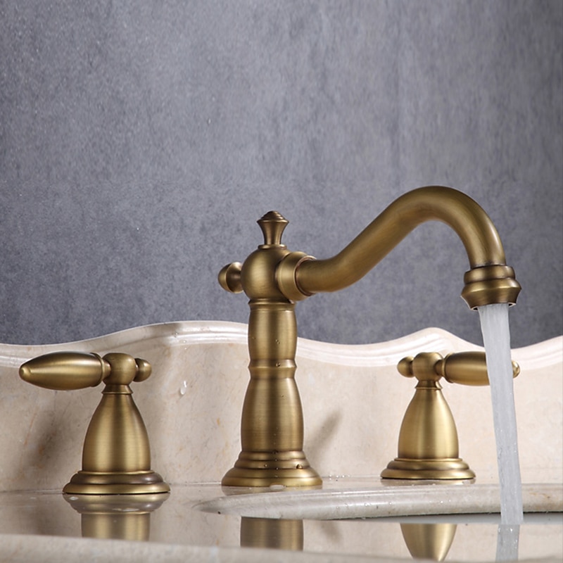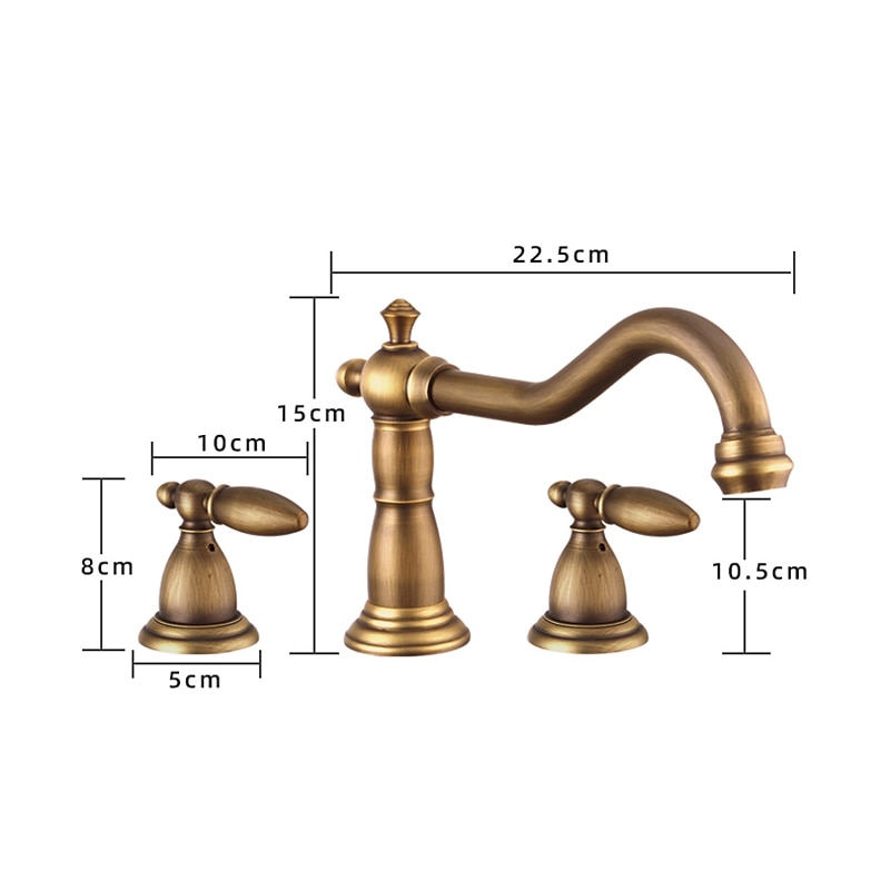 Vintage Widespread Bathroom Sink Mixer Faucet, 360 Swivel Retro Style Brass 3 Hole 2 Handle Basin Tap Deck Mounted, Washroom Basin Vessel Water Tap with sought-after and Cold Hose