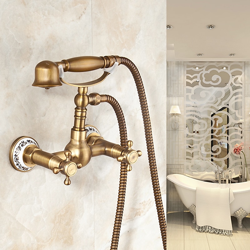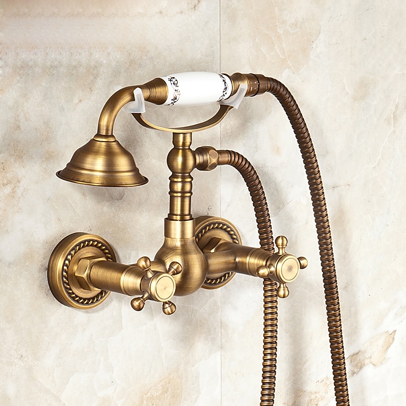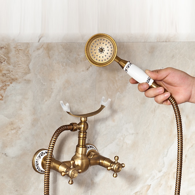 Shower Faucet / Body Jet Massage Set - Handshower Included pullout Rainfall Shower Antique / Vintage Style Antique Brass Mount Inside Brass Valve Bath Shower Mixer Taps 1