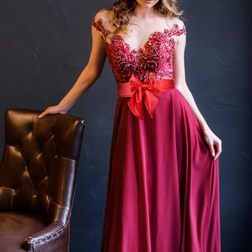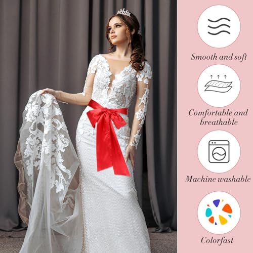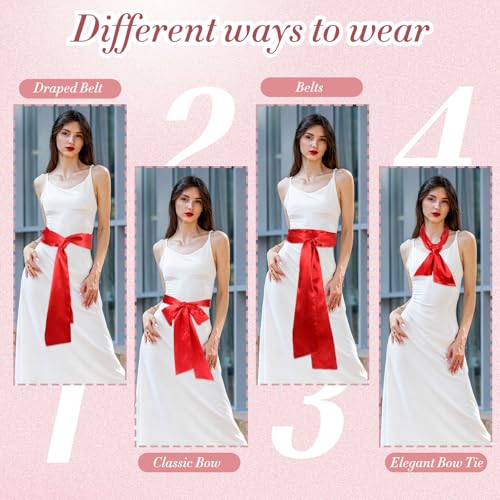 Why Choose Red Bow Belt for Women, 2PCS Wedding Satin Sash Belt Self Tie Ribbon Bow Tie for Dress, Weddings, Parties, 3.74'' Wide Folding Bowties Accessory, Double-Sided Polyester (Red, Wine Red)?