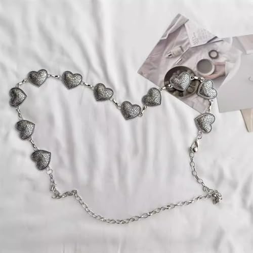 Women's Golden Heart Waist Chain Vintage Alloy Metal Belt Adjustable Carved Heart Waist Jewelry